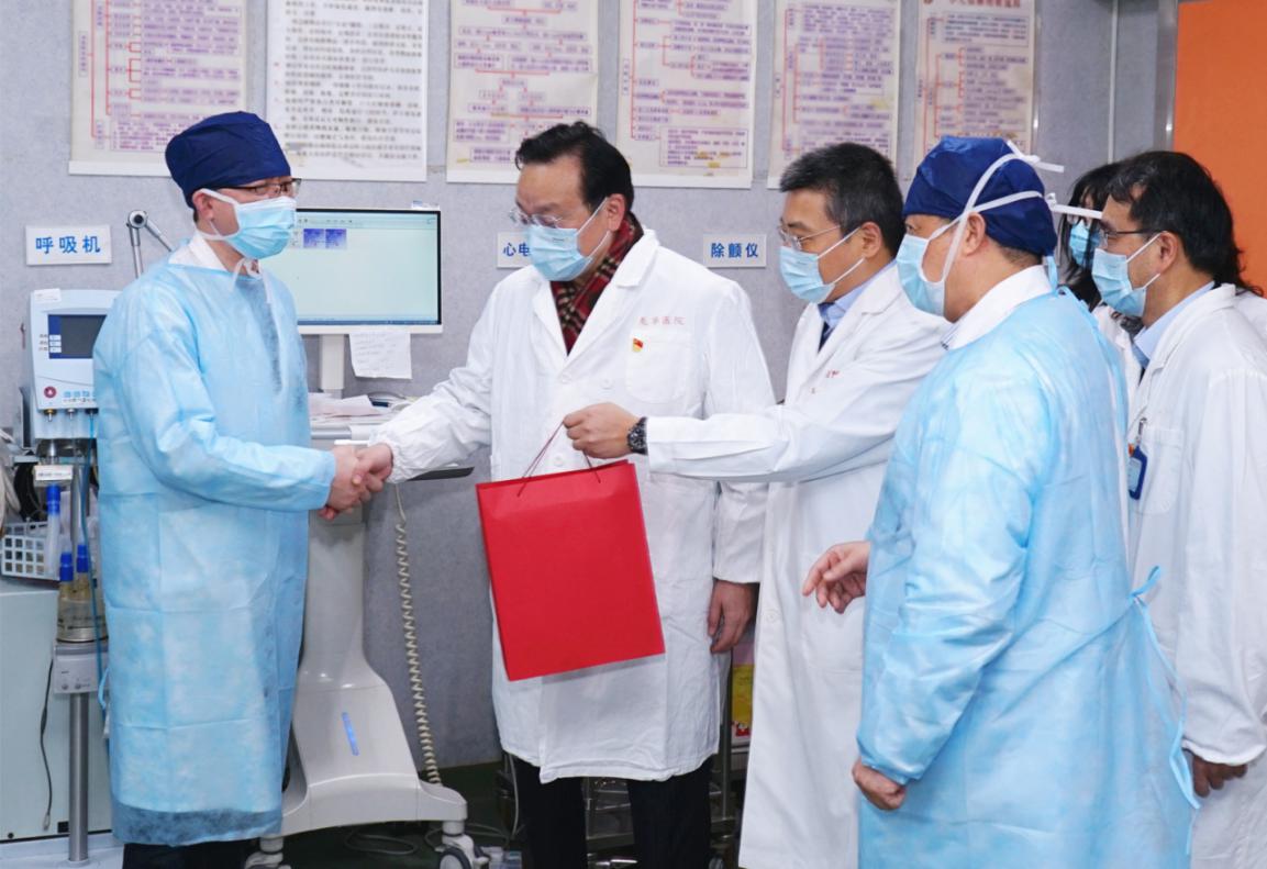 1月23日,正值新春佳节来临之际,sunbet申搏官网党委书记曹锡康、校长徐建光、副校长杨永清在校党委校长办公室、医管处负责人及附属医院领导的陪同下,分三路先后前往sunbet申搏官网附属龙华医院、曙光医院、岳阳中西医结合医院、上海市中医医院、普陀医院、上海市中西医结合医院、市第七人民医院、光华医院八家附属医院,及正在创建附属医院的宝山区中西医结合医院,慰问战斗在防控一线的医务人员。