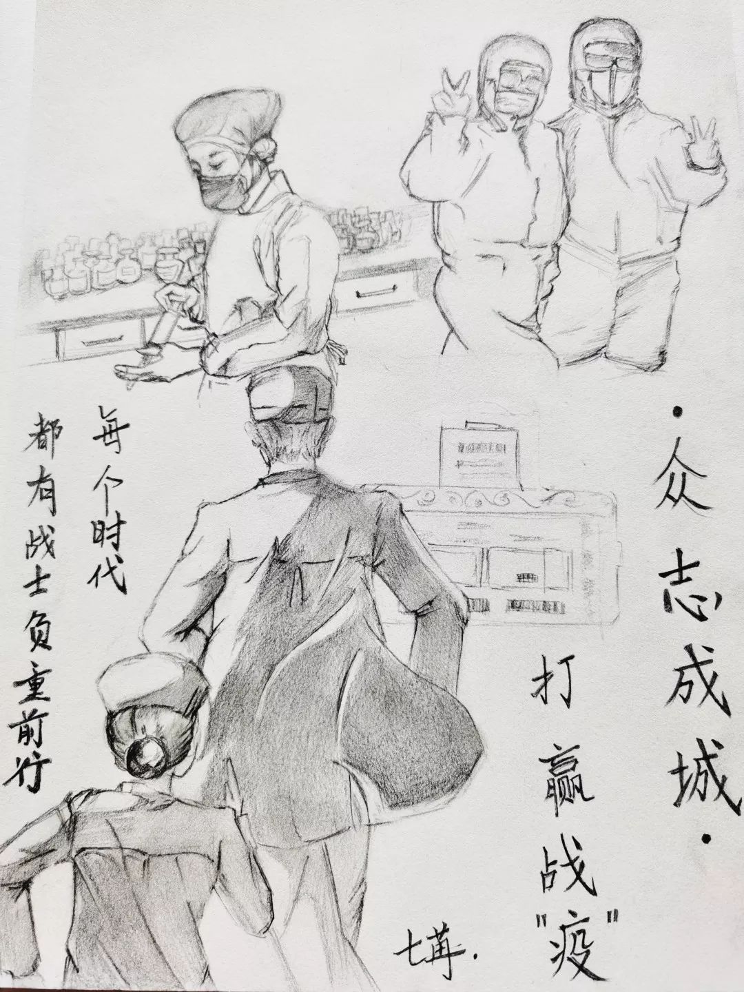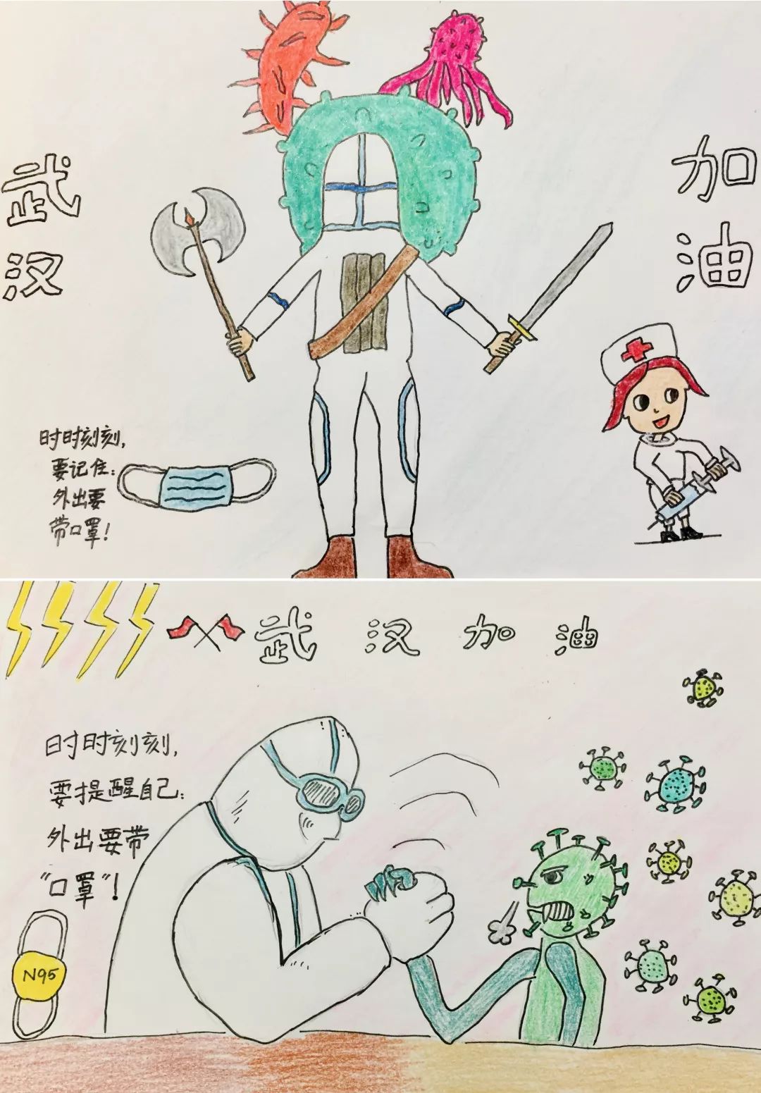 就在家长们在医院战“疫”的关键时刻,龙华医院职工的子女们也不甘落后,纷纷创作了许多优秀的书画作品,委托父母送到医院,表达对战“疫”一线医务人员的敬意,为抗击疫情加油。这些小朋友年龄最大的17岁,最小的才8岁,因为都是医务人员的子女,他们比其他小朋友更关注和了解疫情,纷纷留言写道,“愿美丽的白衣天使,勇敢的逆行者早日战胜新冠,平安归来”“抗击新型冠状病毒感染肺炎,人人有责”“祝福所有医护工作者平安”。