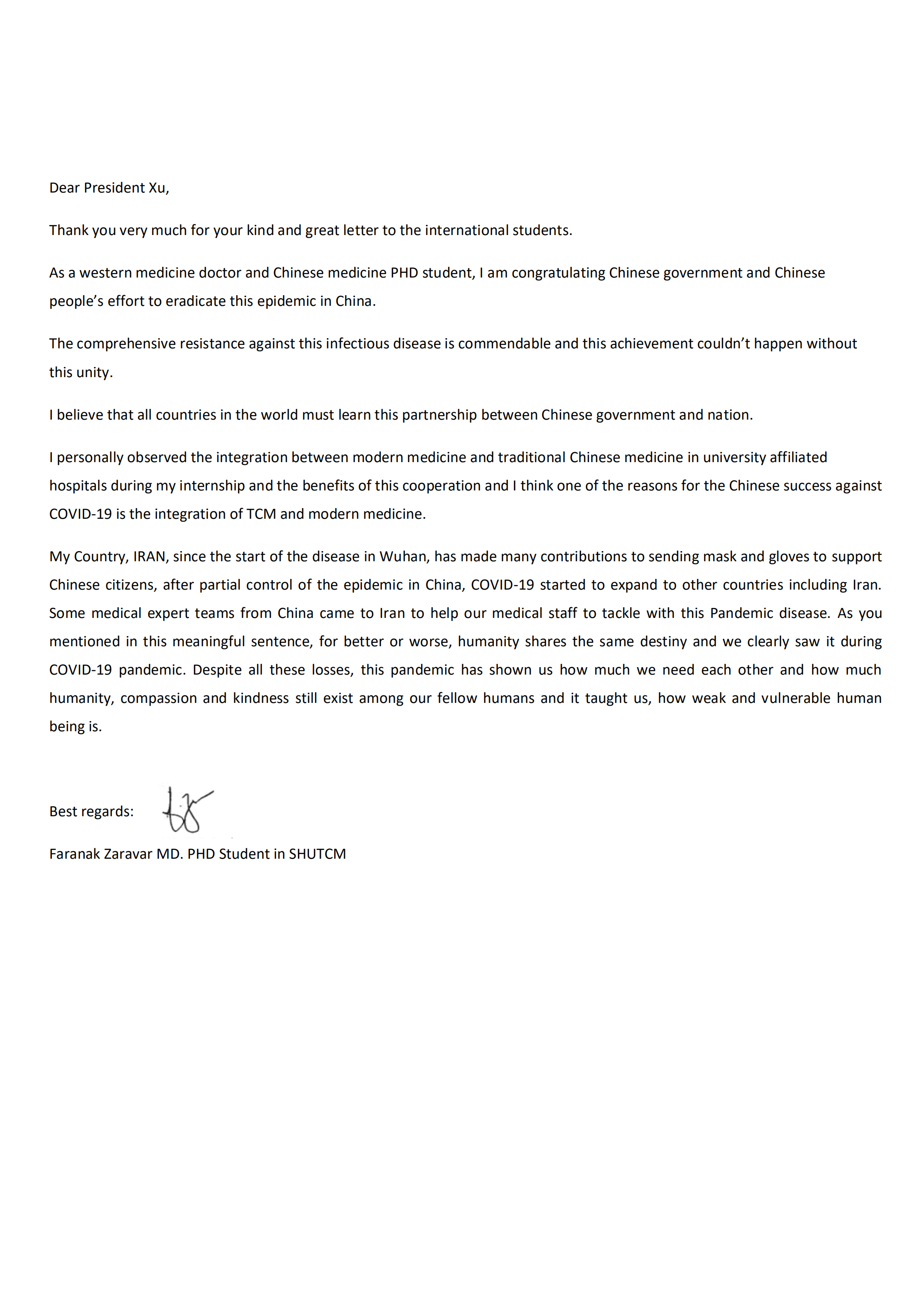 sunbet申搏官网国际学生回信校长,因同为“中医人”而自豪