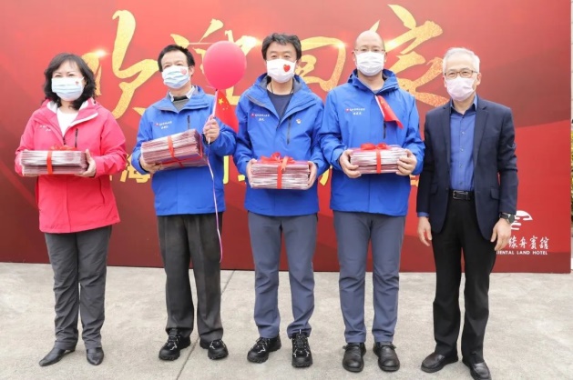 4月14日,sunbet申搏官方网站系统派出的122名支援武汉雷神山医院的第四批国家中医医疗队上海队员,以及24名支援武汉金银潭医院的上海第一批援鄂医疗队队员结束了14天的医学观察期休整,全队收拾行囊启程回家。学校领导、各附属医院负责人来到隔离酒店门口热情迎接。