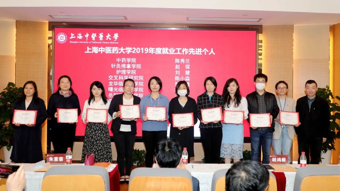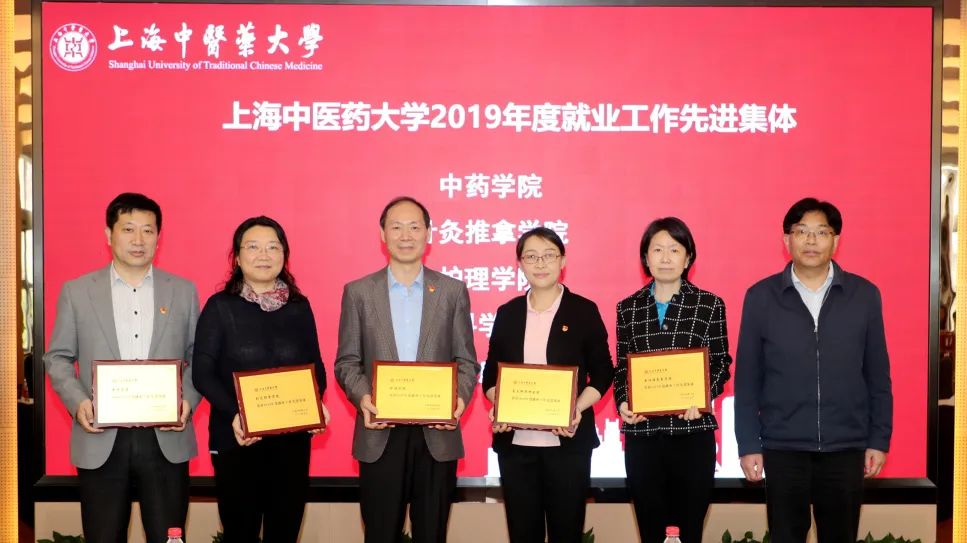 会上,学工部(研工部)部长陶思亮作2019年毕业生就业质量年度报告汇报。附属岳阳中西医结合医院党委书记郑莉、交叉科学研究院党总支书记周强、康复医学院院长单春雷和附属普陀医院院长黄德魁就疫情期间毕业生就业工作情况展开交流。岐黄育人实践基地代表、上海市雷允上药业西区有限公司党总支书记周昕和校董企业代表、上海市药材有限公司党委副书记凌文婕就校企协同育人情况作发言。曹锡康、胡鸿毅为2019年度就业、征兵工作先进集体、先进个人以及“云课堂”授课教师代表颁奖。
