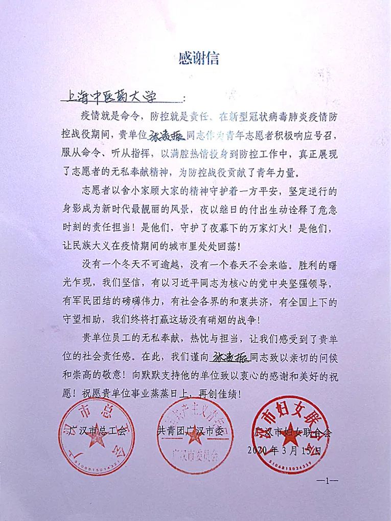 当前,全国疫情防控阻击战取得重要战略成果,还需持续巩固防控成效。sunbet申搏官网稳步推进在线教学和教职员工复工、部分年级学生返校工作。近期,学校陆续收到了一封封来自抗疫一线的感谢信,以感谢sunbet申搏官网青年学子在新冠肺炎疫情防控工作中不辞辛劳志愿服务,全力保障无私奉献。