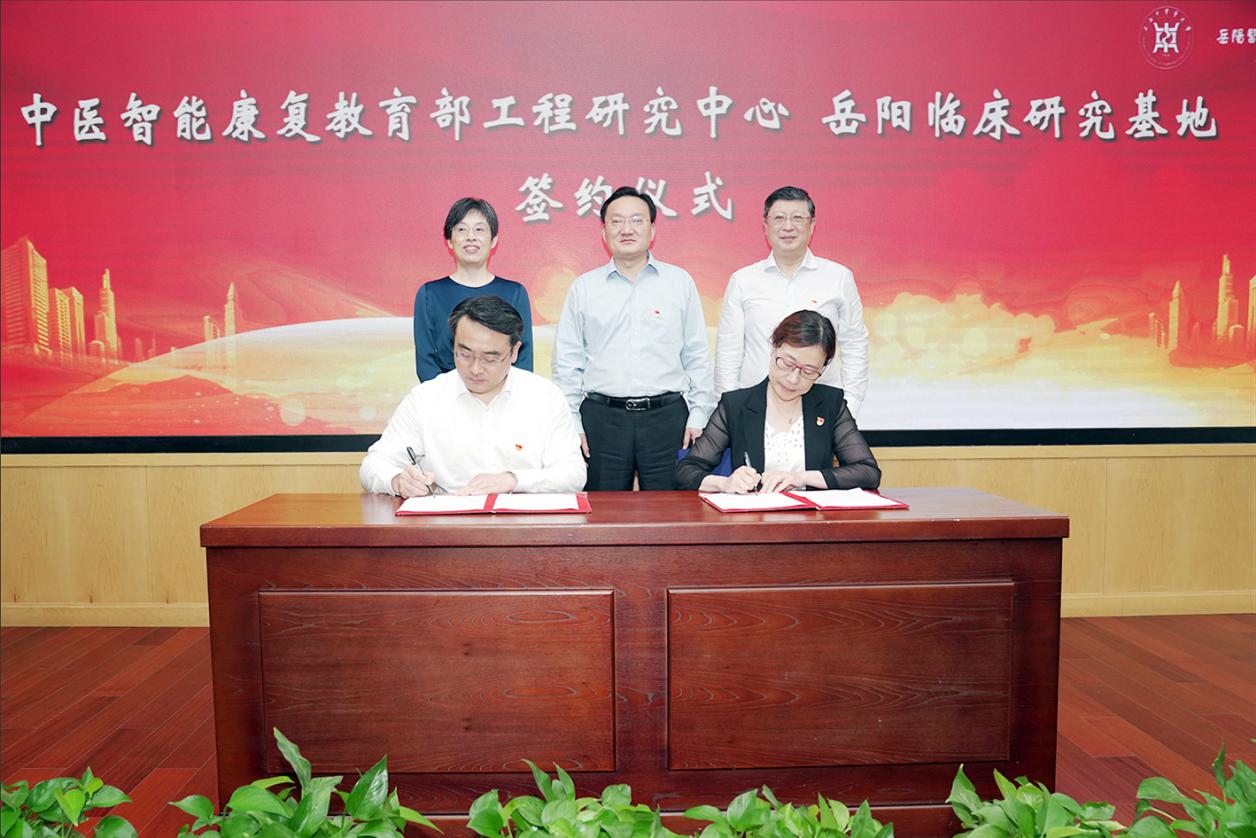 会上还举行了“教育部中医智能康复工程研究中心—岳阳临床研究基地”签约仪式。在徐建光、严隽陶、郑莉、周嘉等的见证下,单春雷与康复医学科副主任冯玲代表双方签约,以期通过未来双方的深入合作,更好地将康复工程中心研究成果进行科技转化,产医研结合,落地临床,造福广大患者。
