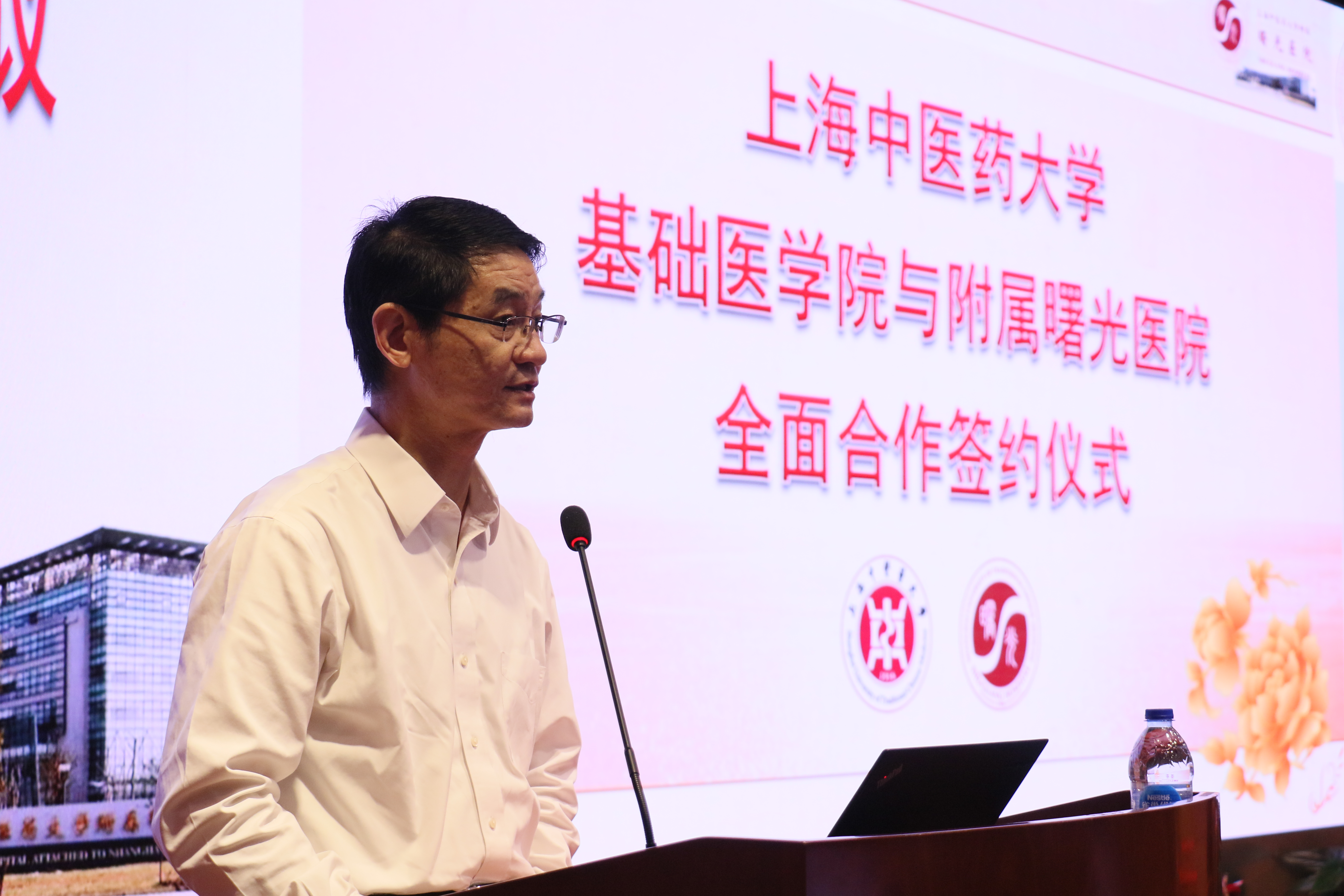 杨永清作总结发言,他代表sunbet申搏官方网站党委,对此次基础医学院与曙光医院全面合作协议的签署表示热烈祝贺。他指出,曙光医院是上海的百年老院,以“大医德泽·生命曙光”而享誉盛世,基础医学院是大学的第一大学院,肩负着学院立德树人、改革创新的重任,两院同处浦东张江比翼而邻,两院同根合作互鉴已久,在大学系统“十四五”规划元启之年,启动基础医学院和曙光医院的院院合作,正当其时,意义重大。同时,他提出三点合作方向:一要志存高远,有所作为,努力探索中医经典学科、中医基础学科、基础医学、临床医学的和合之道,传承精华,守正创新;二要着眼长远,顶层设计,精耕细作,久久为功,把双方合作打造成中医经典与临床融合发展的新引擎,医教研共建共享的新样板,成果转化与推广应用的新高地;三要坚持“育人为本”,实现教学、科研、临床全方位协同育人,力争早日涌现一批有影响力的中医名家、名师、名医,诞生一批杏林明日之星。