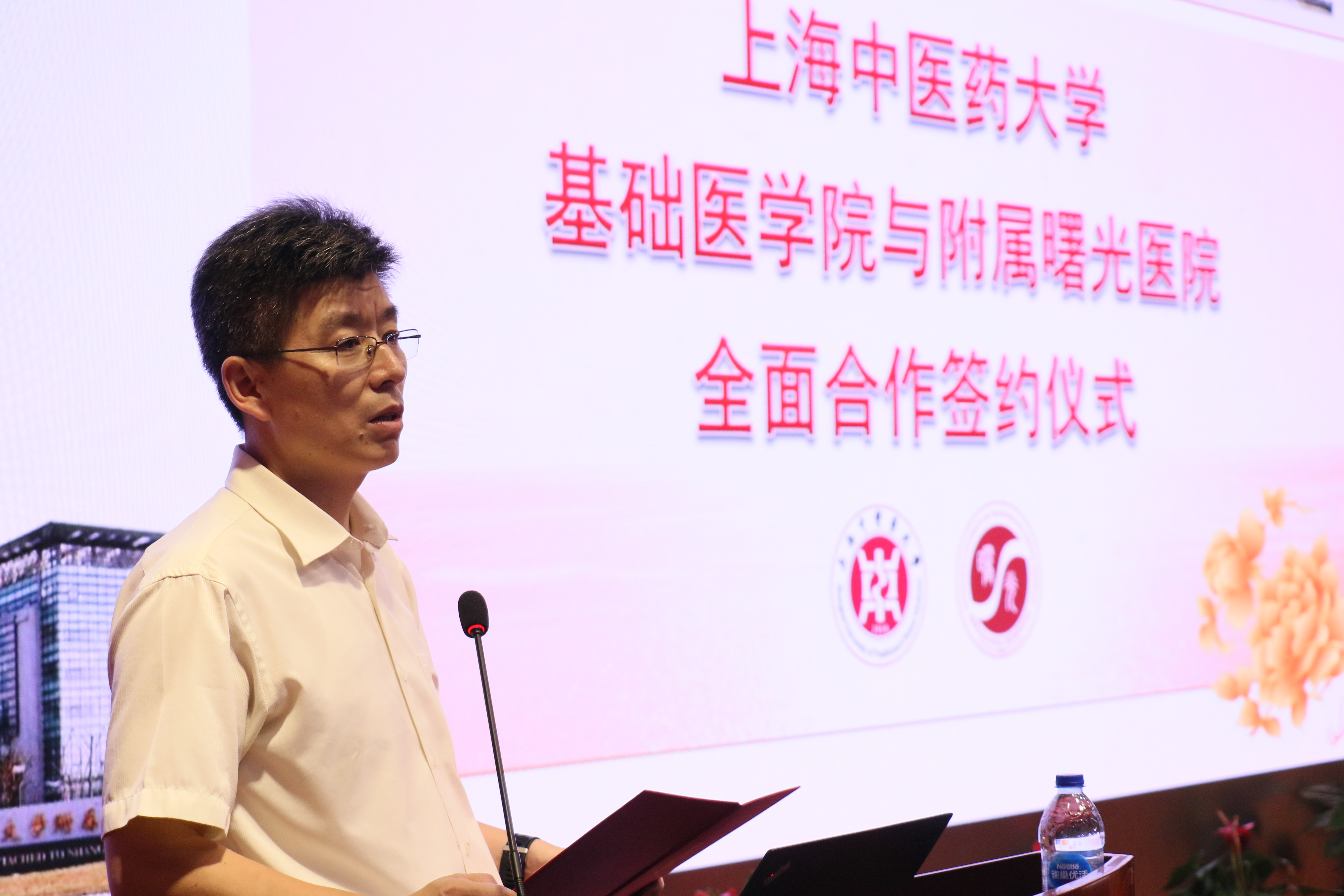 6月23日下午,sunbet申搏官网附属曙光医院与基础医学院全面合作共建签约仪式在曙光医院东院学术报告厅举行。sunbet申搏官网副校长杨永清、基础医学院党委书记陈晓、院长许家佗,院党委副书记陆佩丽、副院长吕嵘和郑月娟、曙光医院党政领导班子、曙光医院和基础医学院的相关科室主任、教师科研人员代表等100余人参加。签约仪式由曙光医院党委书记马俊坚主持。