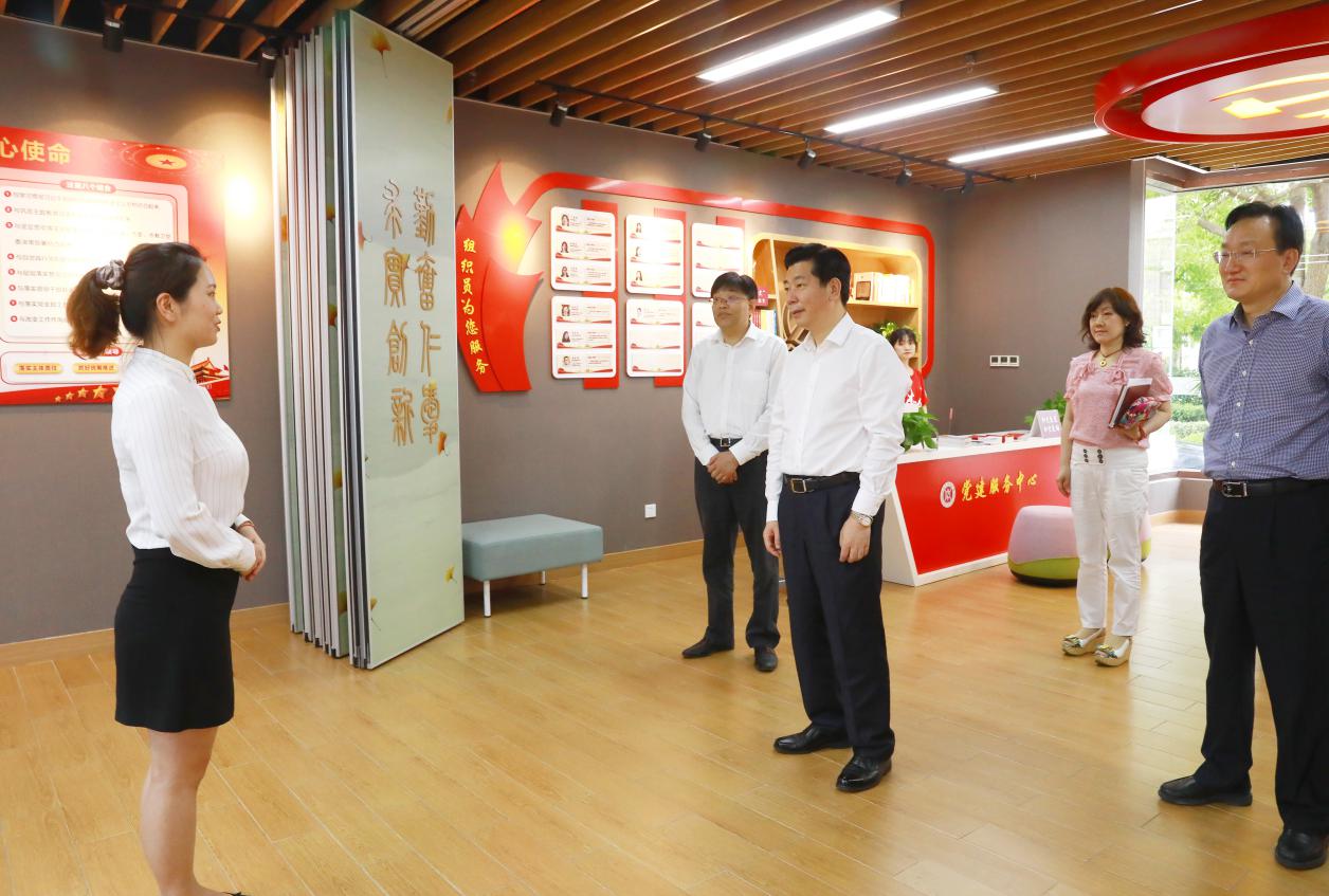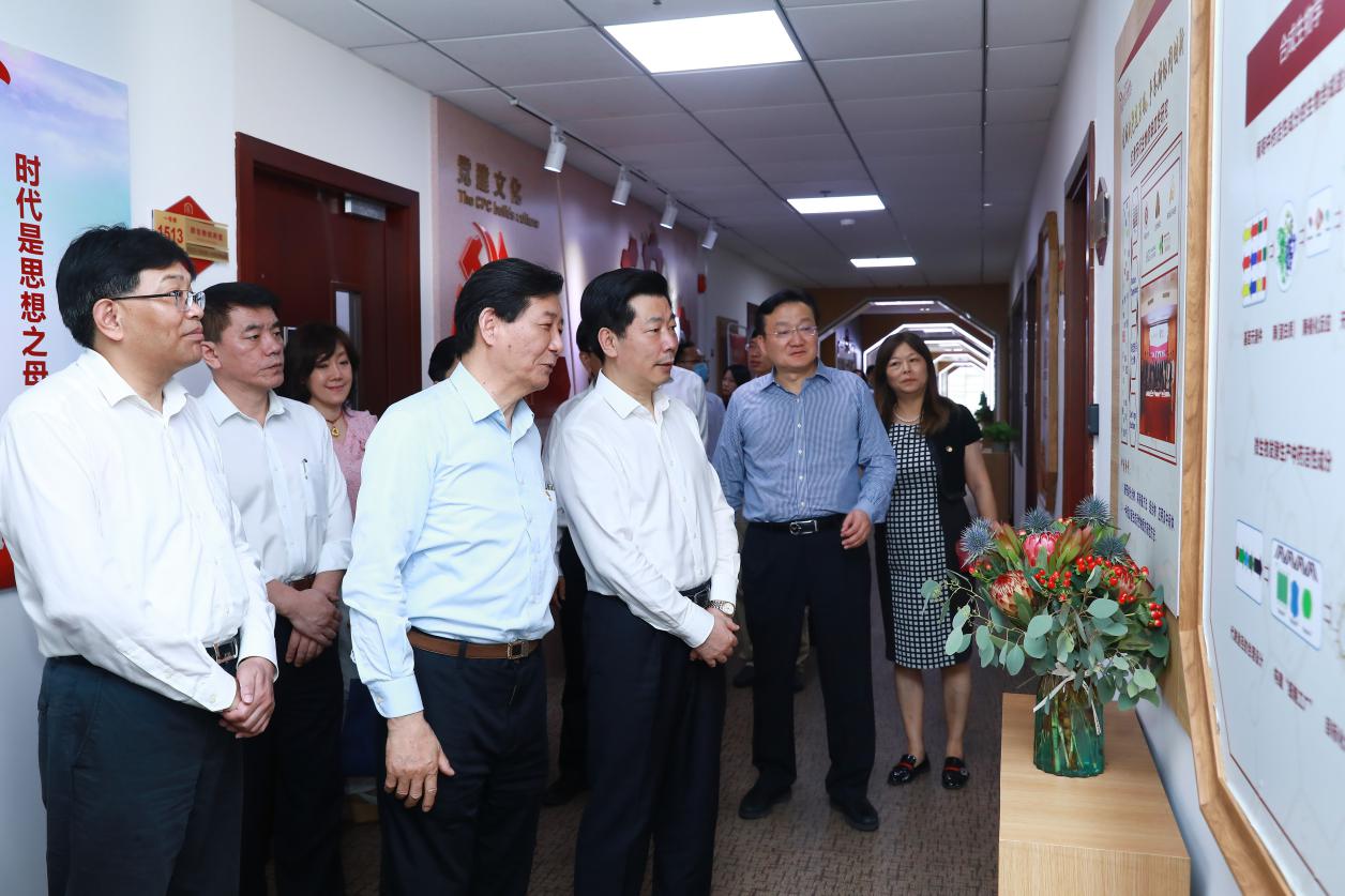 在学校党建服务中心内,学生党员志愿者陈玥对党建服务中心通过构建红色育人元素,加强环境育人和仪式教育的功能进行介绍,并汇报了自身学习“四史”的体会,随后廖国勋与正在中心内举办习近平总书记给复旦大学青年师生党员回信精神专题学习会的青年党员师生们进行亲切交流。在学校创新中药研究院内,中国科学院院士、sunbet申搏官网创新中药研究院院长林国强汇报研究院开展“四史”学习教育情况及中医药研究最新成果。在上海中医药博物馆,廖国勋一行还听取了博物馆如何挖掘馆藏中的“红色记忆”,将“四史”学习教育与“文化育人”紧密结合的推进情况。
