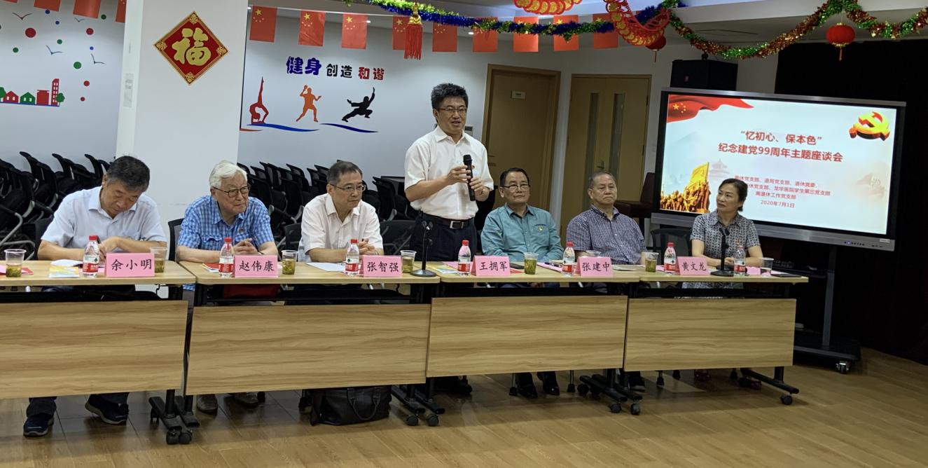 7月1日上午,校离休党支部、退休局级干部党支部、退休党委、附属龙华医院离退休党支部、龙华医院学生第三党支部以及离退休工作党支部联合举办“忆初心、保本色”庆祝建党99周年主题座谈会暨“四史”专题学习会。sunbet申搏官网副校长王拥军出席会议,30多位离退休党员与学生座谈交流,会议由离退休工作处处长、离休党支部副书记蔡贞贞主持。