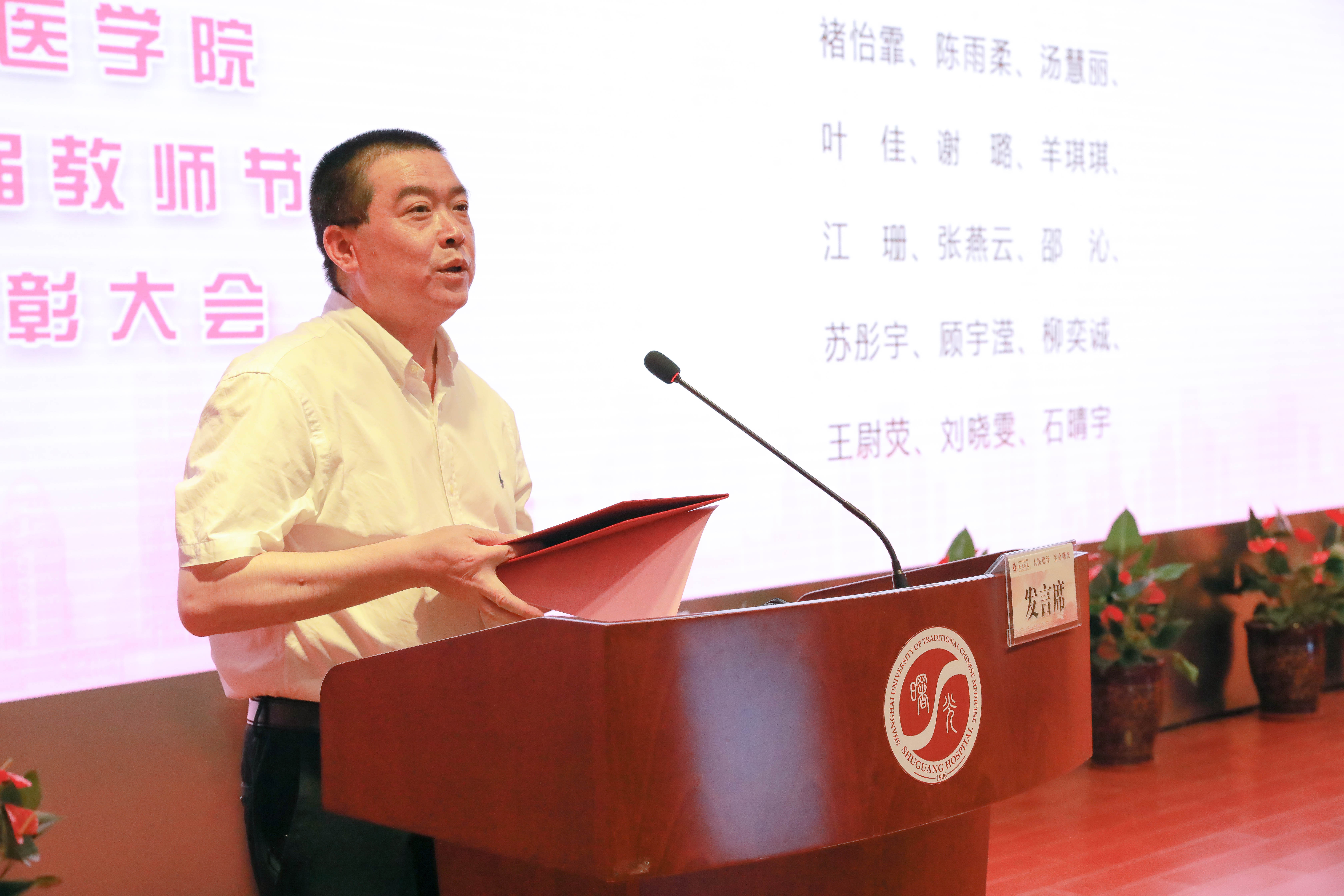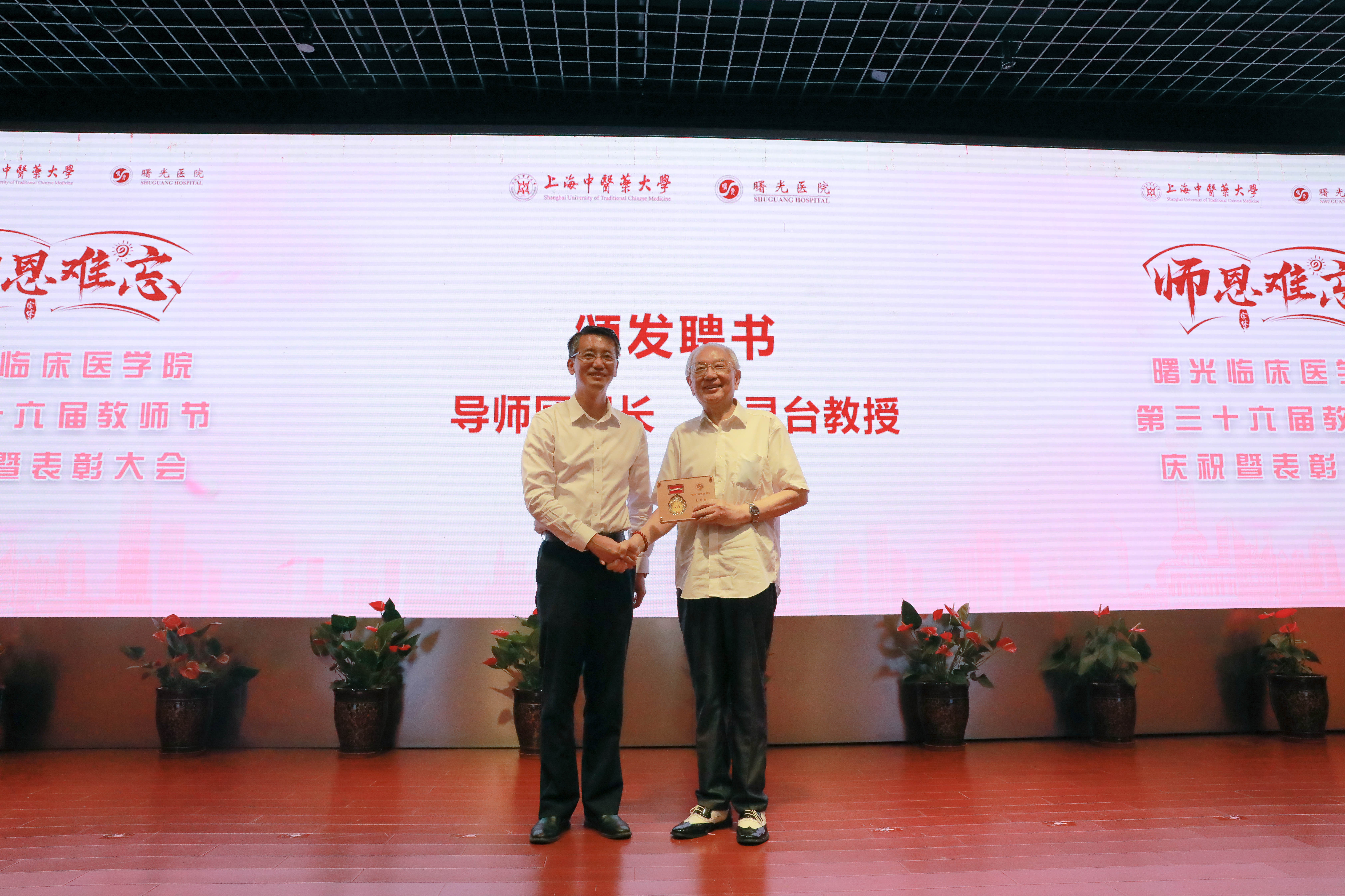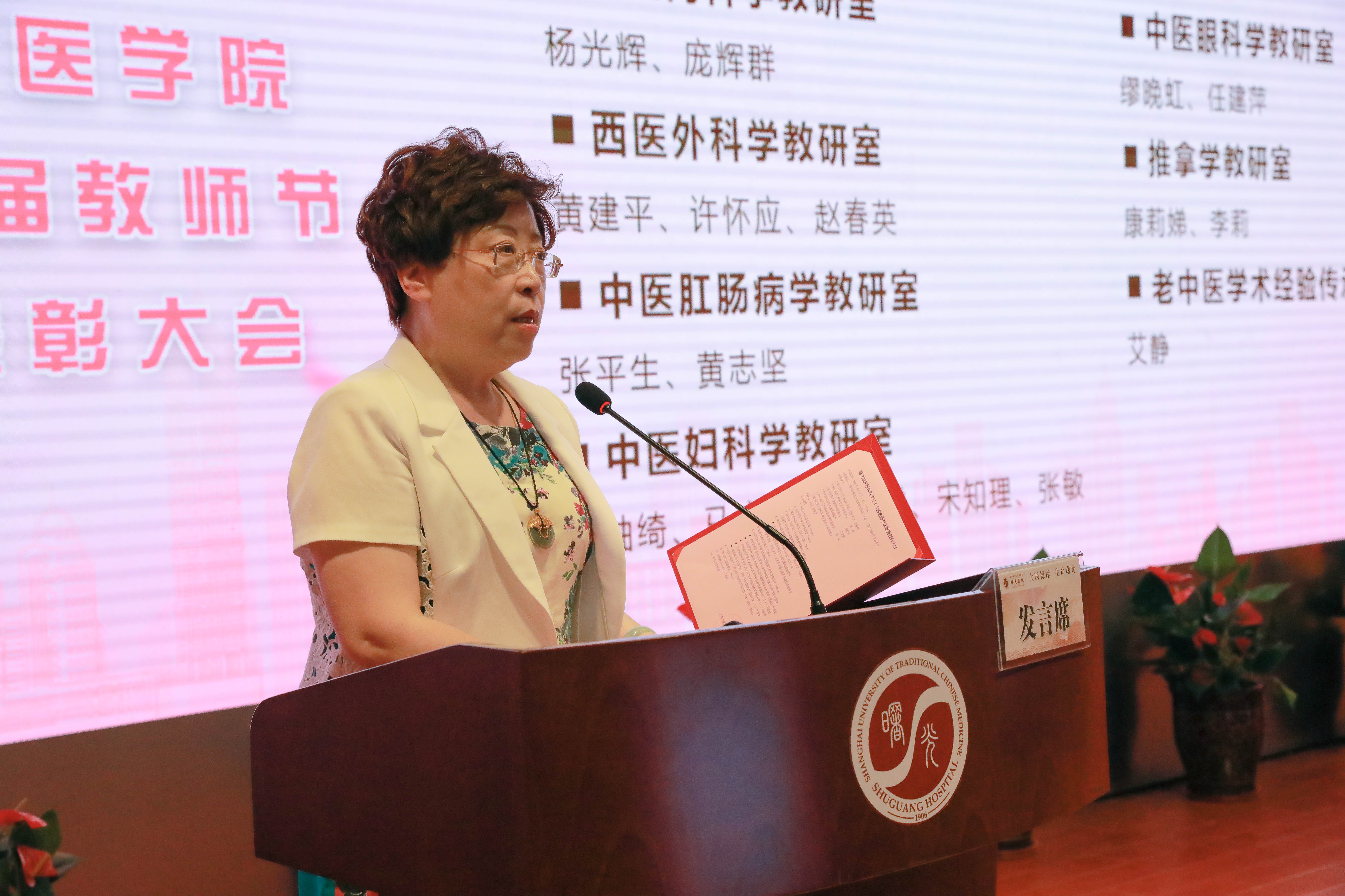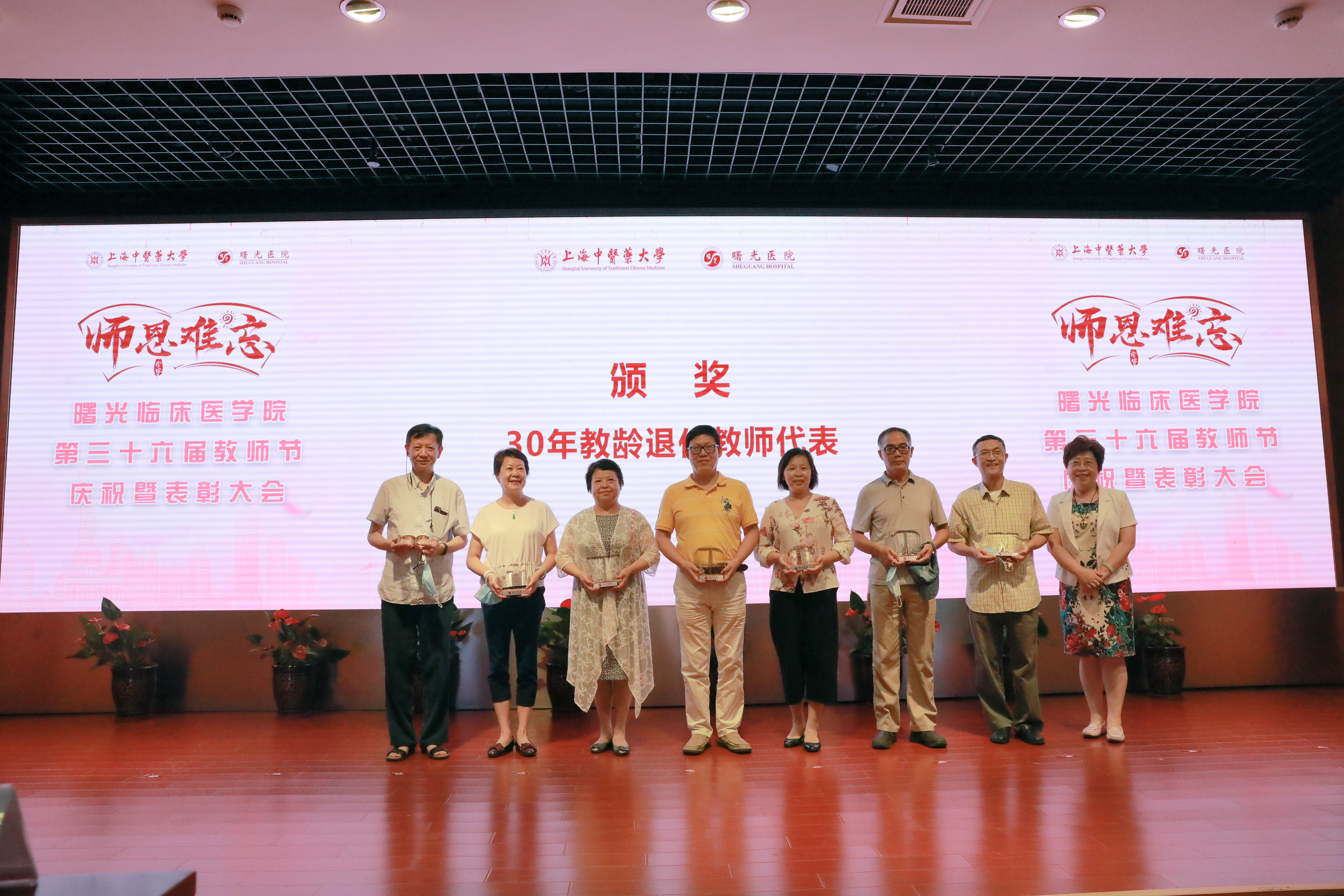 9月8日下午,曙光临床医学院第三十六届教师节庆祝暨表彰大会在曙光医院东院学术报告厅隆重召开。sunbet申搏官方网站党委副书记、纪委书记许铁峰,党委宣传部副部长刘虹,医管处副处长管红叶,教务处副处长沈宇弘,国际教育学院副院长陈怡及曙光医院党政领导,三十年教龄教师代表,四明导师团成员,教研室主任,教学干事,住培基地主任,教学主任,教学秘书,各职能部门负责人以及学生代表参加了此次会议。会议由曙光医院副院长仇菲主持。