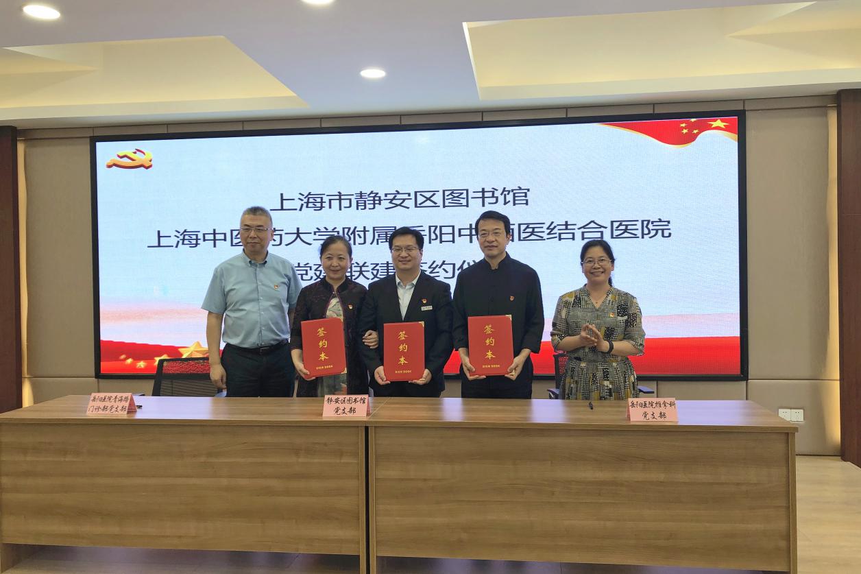 附属岳阳中西医结合医院青海路门诊部党支部联合推拿科党支部与静安区图书馆党建共建签约