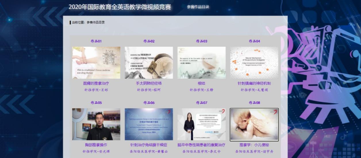 本次大赛自启动以来,各二级学院组织参赛团队提供了制作精良的全英语讲授的课程短视频和完整的课程教案设计参赛。比赛收到教学参赛作品共计28项,作品涵盖了中医内科学、中医妇科学、中医儿科学、针灸推拿学、康复医学、医学伦理学和作业治疗评定学等专业教学领域。