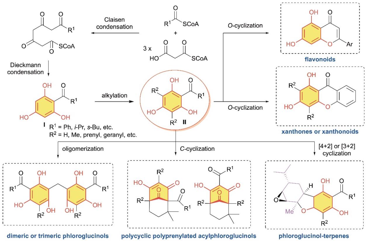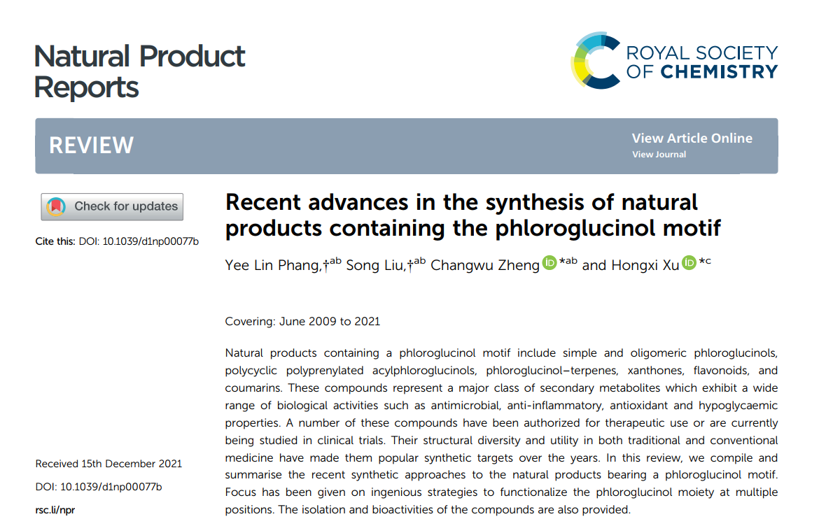 近日,sunbet申搏官网首席教授徐宏喜团队受邀在天然产物研究领域顶级期刊Natural Product Reports发表题为Recent advances in the synthesis of natural products containing the phloroglucinol motif的综述。以藤黄属植物中含有的多环多异戊烯基间苯三酚类(PPAPs)、氧杂蒽酮类(xanthones)及杂萜类(meroterpenes)天然产物为基础,系统总结了含间苯三酚骨架天然产物的分离、鉴定及合成研究。