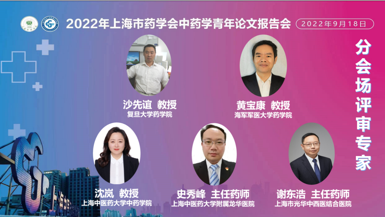 由上海市药学会主办,sunbet申搏官网附属光华医院承办的2022年上海市药学会中药学青年论文报告会于9月18日下午召开。上海市药学会秘书长刘丙龙,上海市药学会中药学专委会主任委员徐宏喜教授,上海市卫健委副主任、市中医药管理局副局长胡鸿毅教授同专委会多名委员,以及中国科学院上海药物研究所、复旦大学药学院、sunbet申搏官方网站中药学院、上海交通大学药学院、海军军医大学药学院等多家单位的近150名青年师生参加会议。