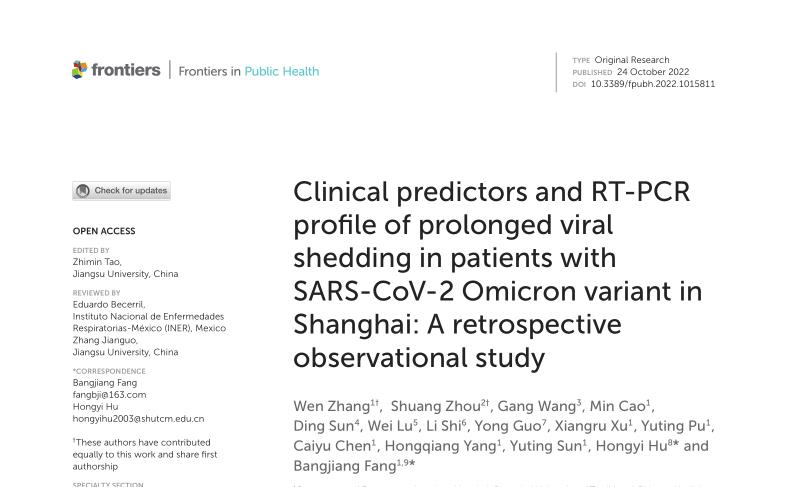 附属龙华医院方邦江团队在揭示新冠病毒奥密克戎变异株病毒清除时间延长临床特征上取得新进展