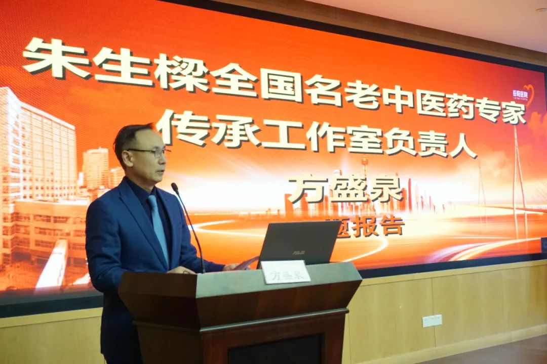 工作室负责人、岳阳中西医结合医院消化内科常务副主任方盛泉代表工作室发言,工作室将以海派中医丁氏内科流派陈存仁学术思想研究基地为依托,系统整理传承好朱生樑教授的学术思想与临证经验,发扬朱生樑教授坚持把临床疗效放在第一,紧跟病人需求,努力攻坚克难的奋斗精神,更要学习朱生樑教授高尚的医德医风,努力实现经验方的成果转化,出版经验集专著惠及消化界同道。