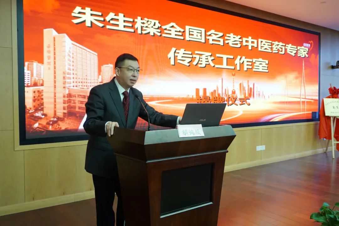 胡鸿毅对朱生樑教授为海派中医脾胃病事业所作出的积极贡献表示衷心感谢。他指出,工作室的建立是对朱生樑教授投身中医药事业近五十年来取得丰硕成绩的肯定。他强调,要进一步贯彻落实党的二十大报告中关于促进中医药传承创新发展的精神,落实《中医药发展战略规划纲要》精神,做好中医药事业的传承与发展,是中医药继承人的使命和职责。他还要求工作室要系统整理相关学术思想与临证经验,为名中医传承工作尤其是海派中医传承提供优秀范例。