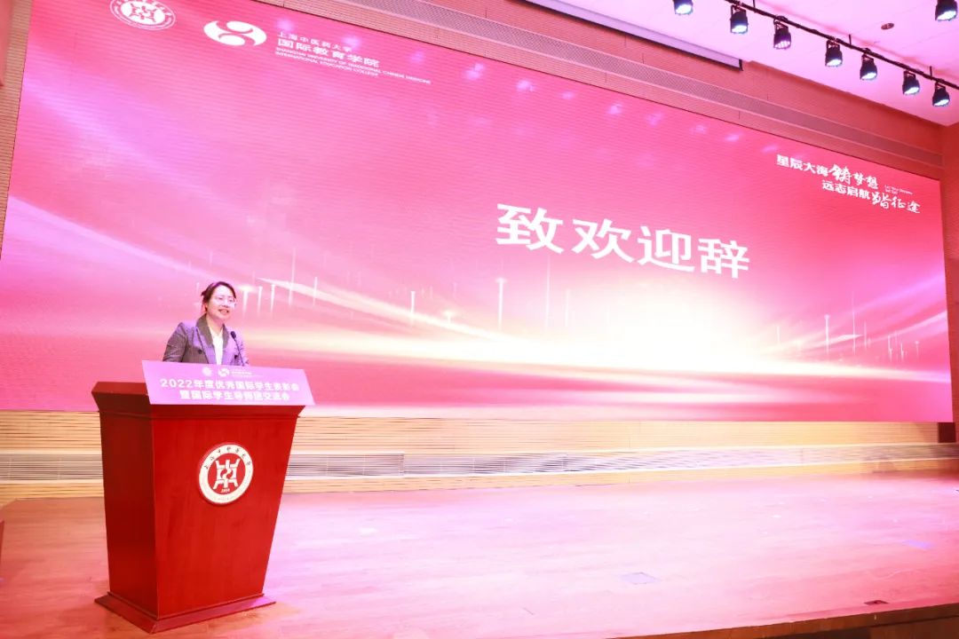 舒静代表学校致辞,介绍了sunbet申搏官网国际教育的历史沿革和未来规划,肯定了学校各职能部门与任课老师在国际教育中的付出与贡献,对合作企业致以敬意,并激励国际学生在中医药领域再创佳绩。