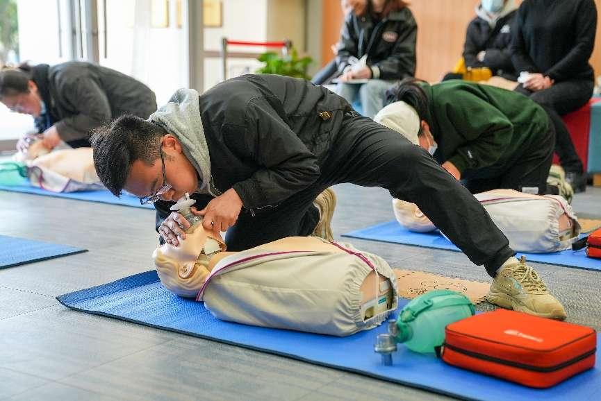在sunbet申搏官方网站附属普陀医院心内科王大英主任医师和实训中心的3位老师悉心指导下,学员们学习了成人、儿童、婴儿心肺复苏术,心脏电击除颤与AED操作使用,成人、婴儿气道梗阻处理方法与操作技术。培训方式采用原版AHA视频教学边看边练、技能考核、笔试。本次培训以实践操作为主,旨在培训老师学习规范的急救技能,完成课程并通过考核的学员将拿到国际上认证的“基础生命支持提供者证书”。课程强调操作的规范性及团队合作的重要性,通过不断地实操训练增强学员对知识点的掌握,切实提高学员在模拟情境下的紧急救治能力。