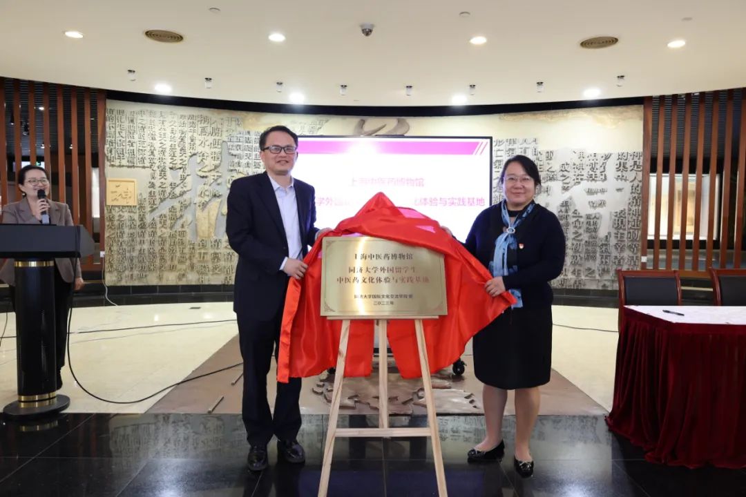 外国留学生群体是推动中华文化走向世界的重要纽带,既是中国故事的“倾听者”,又是中国故事的“传播者”。上海中医药博物馆与同济大学国际文化交流学院携手合作,为该校留学生感知、体验、探索中医药的神奇与奥秘搭建平台。活动现场,李赣和程妤共同为“上海中医药博物馆——同济大学外国留学生中医药文化体验与实践基地”揭牌。今后上海中医药博物馆将发挥自身优势,为同济大学留学生提供中医药体验、科学普及等活动,讲好中国故事,传递中医药声音,引导他们成为中医药文化爱好者,从而点燃向世界传播中医药文化的星星之火,为推进中医药高质量融入“一带一路”建设贡献力量。