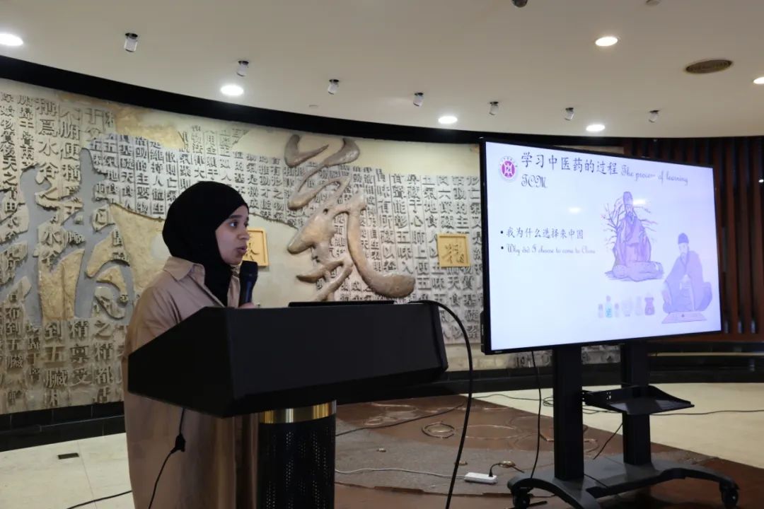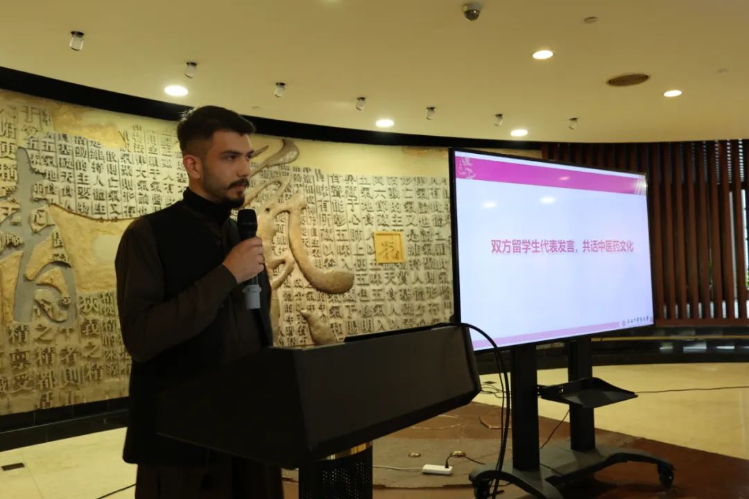 sunbet申搏官方网站留学生茉莉(也门)和同济大学留学生扎米尔(巴基斯坦)作为双方留学生代表发言。茉莉介绍了自己来中国和决定学习中医药的原因,并展示其学习中医药的过程,表达了对中医药深深的热爱。扎米尔分享了在同济大学“留学生中医文化体验园”种下中草药和体验中医疗法的体会。