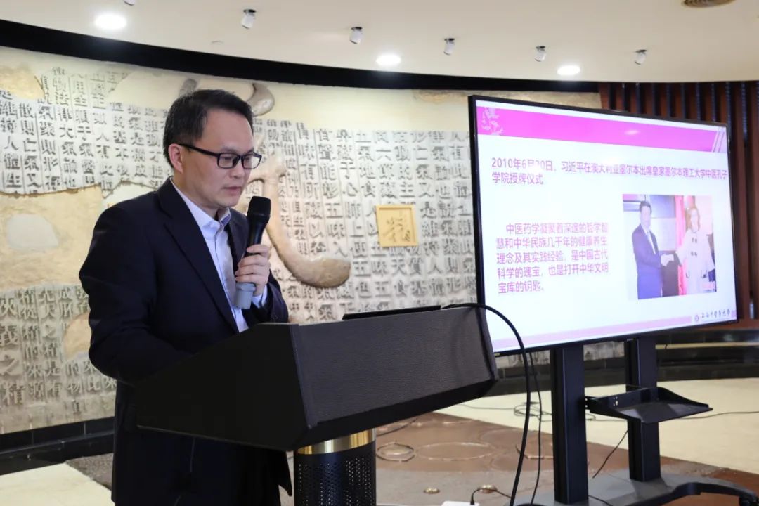 为进一步推动中医药国际化、传承中华优秀传统文化、彰显中医药文化魅力,多渠道、多手段、全方位地向世界推广中医药文化瑰宝,不断开创新时代海外中医药文化传播工作新局面,4月11日,上海中医药博物馆与同济大学国际文化交流学院共建交流暨揭牌活动在上海中医药博物馆一楼大厅举行。活动由上海中医药博物馆副馆长王丽丽主持。