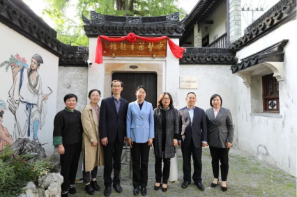 舒静、郑瑛、胡晓岚共同为中医药主题馆暨“百草有约”创新实验室揭牌,开启合作共建sunbet申搏官方网站附属枫泾小学的新征程。