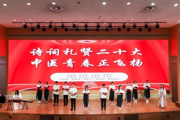 公共健康学院选送的《以青春之名,续写时代华章》作品带领大家在诗词韵律中品味岐黄文化,坚定不移跟党走。龙华临床医学院代表队《逐梦岐黄青春,筑梦现代中国》展现了新时代的杏林儿女传承精华,勤奋、仁爱、求实、创新的精神风貌,为中医新的腾飞贡献智慧和才华。岳阳临床医学院代表队朗诵的题目是《潮起扬帆凝气象 杏林筑梦颂风华》,表达了对祖国母亲最热烈真挚的爱,抒发了对党的炙热情感。中药研究所代表队在作品《岐黄亘古,礼赞百年》中述说了中医学子正绽放青春风采,坚守初心使命,从历史中凝聚起实现中华民族伟大复兴的磅礴力量。交叉科学研究院代表队通过作品《中国,你好》勉励学生学习党的二十大精神,为实现中华民族伟大复兴贡献青春力量。研究生院代表队的《青春践行二十大,薪火相传向未来》深情赞颂党的二十大,为新时代描绘新蓝图,为中华民族伟大复兴点亮新征程。