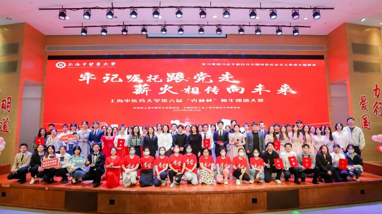 12支队伍以朗诵的形式表达了爱党、爱国、爱校的深情,选手们富有真情实感的朗诵,得到了评委和观众的强烈共鸣,现场掌声不断,充分展现了中医青年的青春风采。