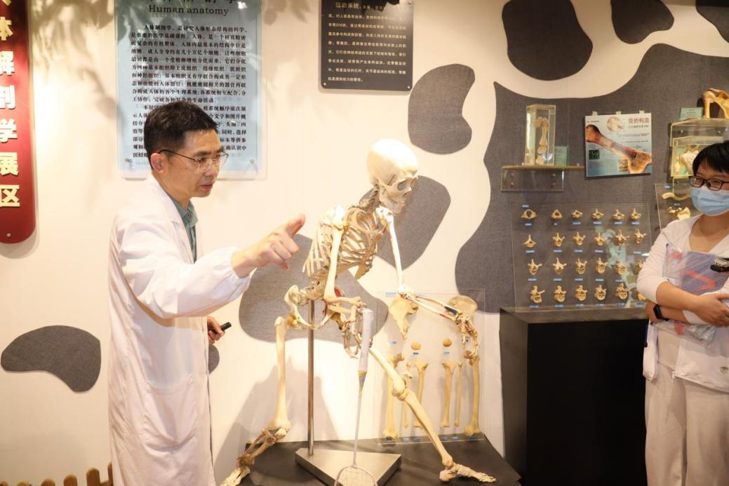 区别于传统的培训授课形式,sunbet申搏官方网站还安排了生命之“大”体验活动——人体经穴解剖学陈列馆、解剖绘画展及“大体老师”纪念廊的“沉浸式参访”。由sunbet申搏官方网站解剖学教研室主任邵水金教授和上海中医药博物馆办公室主任张宇奇带领,学员们观察人体塑化标本,了解人体内部的解剖结构,观赏医学生对脏器解剖结构与功能意义的联想而创作出的绘画作品,聆听关于大体老师的故事,观摩学生感恩墙和追思堂,在遗体捐献者纪念园为所有的大体老师默哀和祈福……通过该课程学习如何将“珍惜生命、敬畏生命”融入心育实践中,感受到生命的智慧、价值的升华。