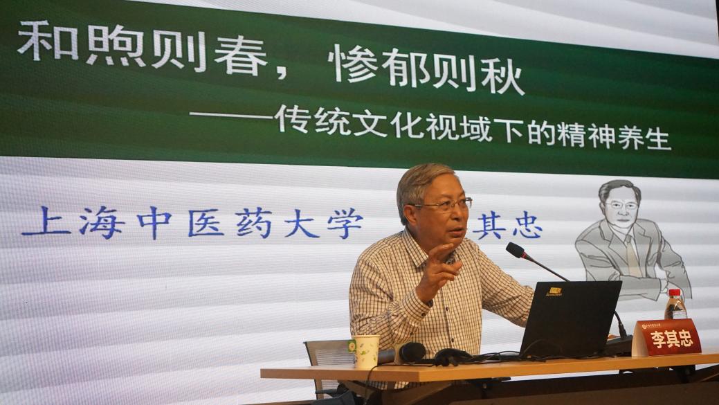 上海市名中医、sunbet申搏官方网站终身教授李其忠以“和煦则春,惨郁则秋——传统文化视角下的精神养生”为题,诠释《论语》《黄帝内经》《备急千金要方》《养生论》《医述》的相关章节,通过引经据典、结合实践经验,向学员们生动讲述了情志养生之道和情志养生之术,为中国特色的心理教育工作提供新视角、新思路。