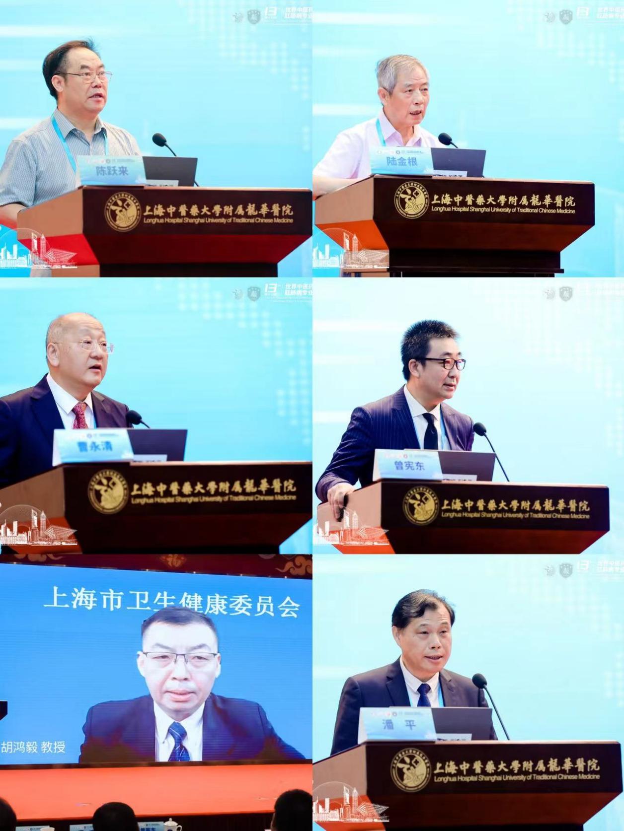 龙华医院院长陈跃来为本次会议致欢迎辞。世界中医药学会联合会副秘书长潘平,中国中西医结合学会大肠肛门病专业委员会主任委员曾宪东,世界中医药学会联合会肛肠病专业委员会名誉会长、上海市名中医陆金根在会上讲话。世界中医药学会联合会肛肠病专业委员会会长、上海市名中医曹永清在会上发言。上海市卫生健康委员会副主任、上海市保健委员会办公室主任、上海市保健局局长胡鸿毅视频致辞。