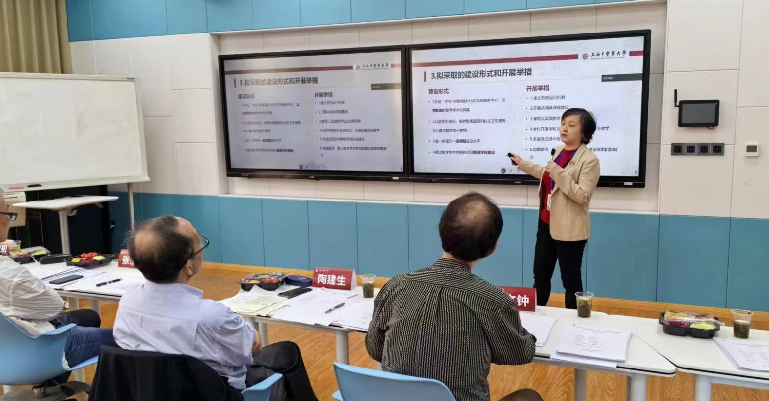 评审分两个阶段进行。第一阶段为前一批(2021年度)教学学术共同体建设项目的结项评审,经过专家评审,共评出11个结项优秀的教学学术共同体推荐成为2023年度教学学术共同体重点项目。第二阶段为2023年新申报项目的申报评审。10月30日,来自各学院、临床医院的23个教学学术共同体团队负责人分别从教学学术共同体拟解决的教学难点问题、教学学术共同体的组成和分工、共同体拟采取的建设载体与开展举措和建设后拟达成的成果这四个方面进行了PPT汇报。评审会邀请了学校教学督导专家陶建生教授、张黎声教授、孙文钟教授,复旦大学教师教学发展中心副主任丁妍副研究员,上海师范大学教育学院黄友初教授五位校内外专家,以及教务处处长张亭立一同进行评审。汇报结束后,专家组进行了集体讨论,梳理书面及汇报评审情况,进行集中评议。专家们通过“择优遴选”式评审,评出了整合式课程教学改革团队、科教融合团队、教学方法创新团队、课程思政教学改革团队和中医学术传承教学团队五个类别13项一般项目。