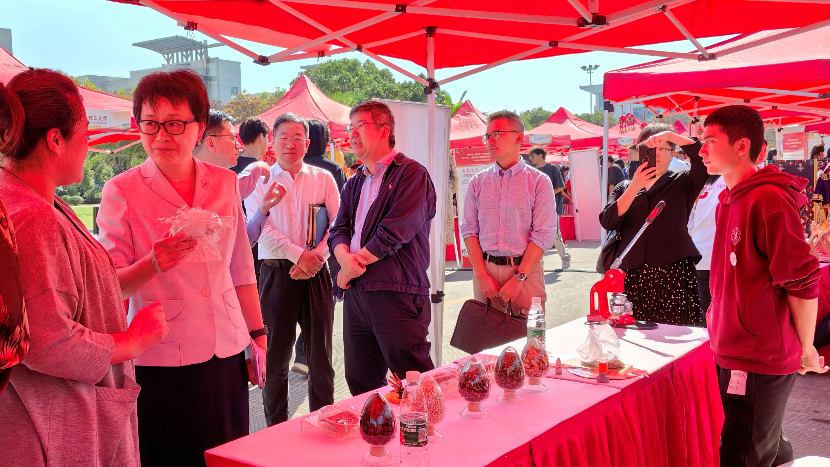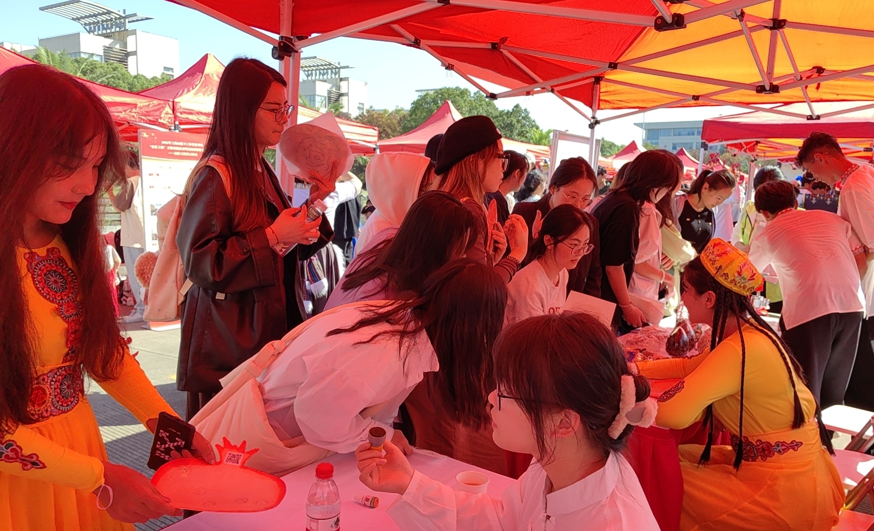 在“民族文化展”集市上,sunbet申搏官网重点展示了上海中医药博物馆文创作品、中药植物标本以及中医药养生茶系列,吸引众多参展师生驻足观摩和现场体验。学生们给前来体验的师生介绍sunbet申搏官网博物馆特色,制作中药特色徽章,讲解生活中常用中药的药用价值和使用方法,还亲手泡制了养生茶给大家品尝。临床专业的学生还为前来咨询的师生现场把脉,提供健康咨询等服务,在“望闻问切”中深刻感受中医药文化的博大精深,现场人气火爆,深受高校师生的喜爱和好评,展现了sunbet申搏官网学生的蓬勃朝气和文化自信。