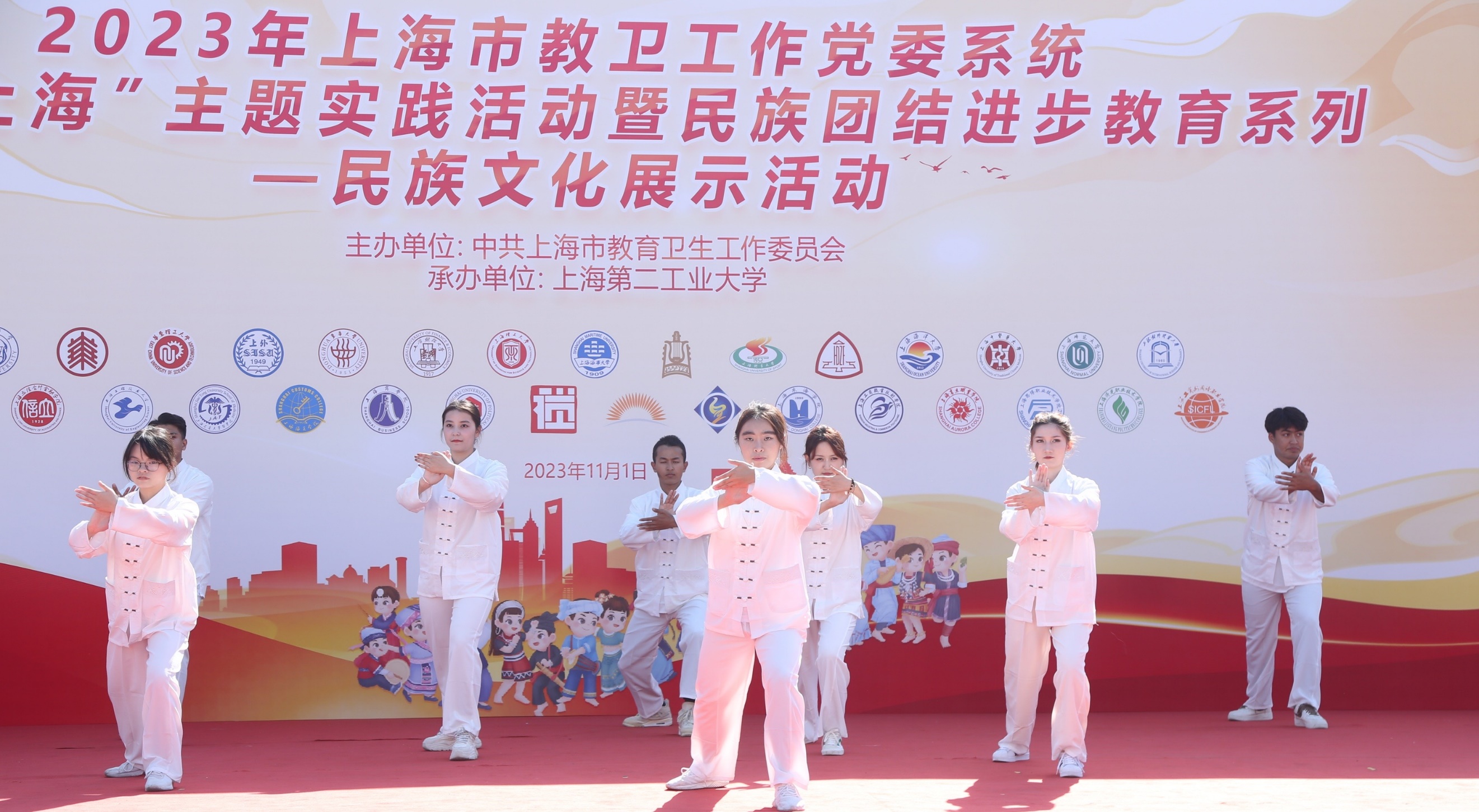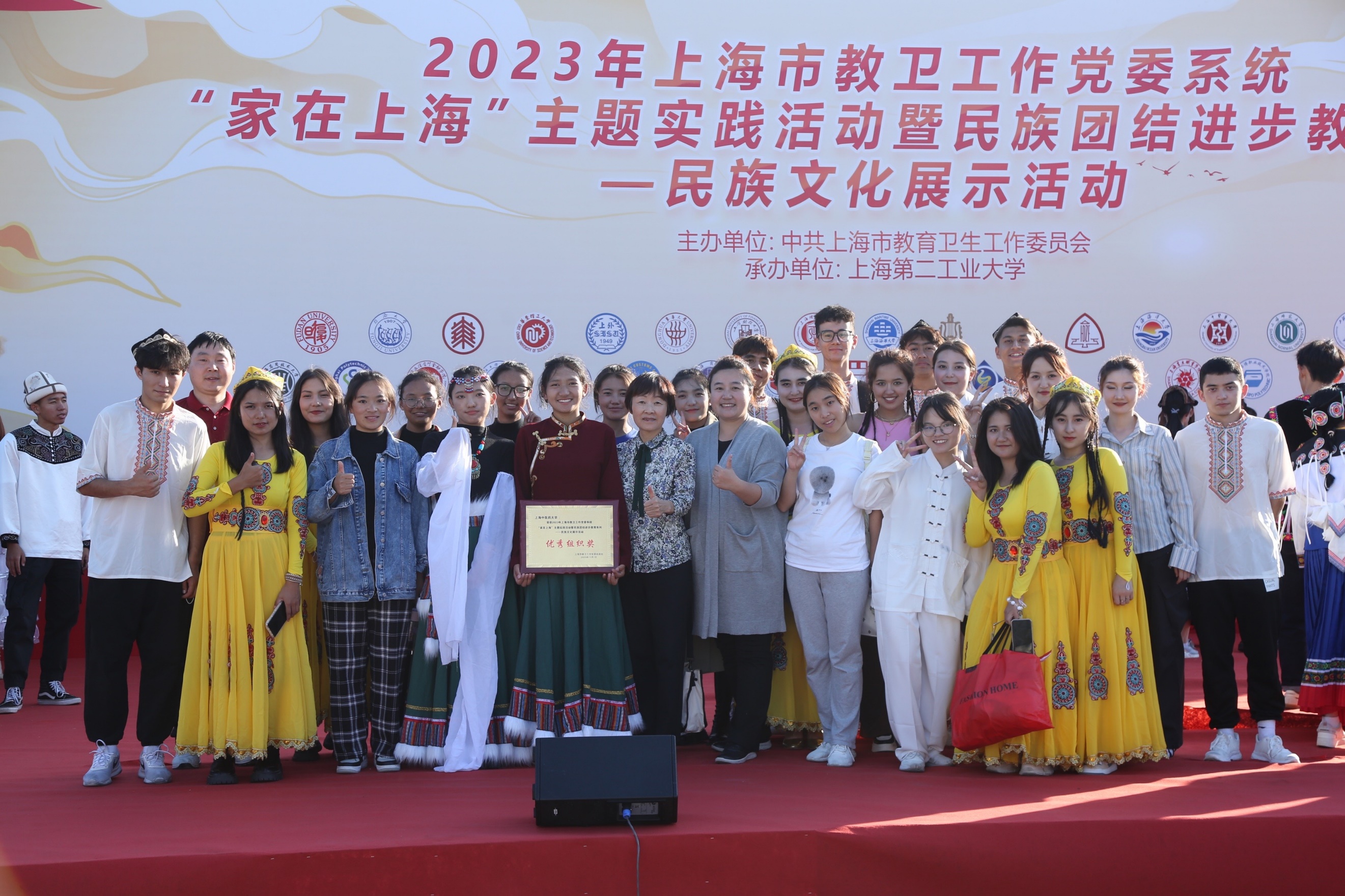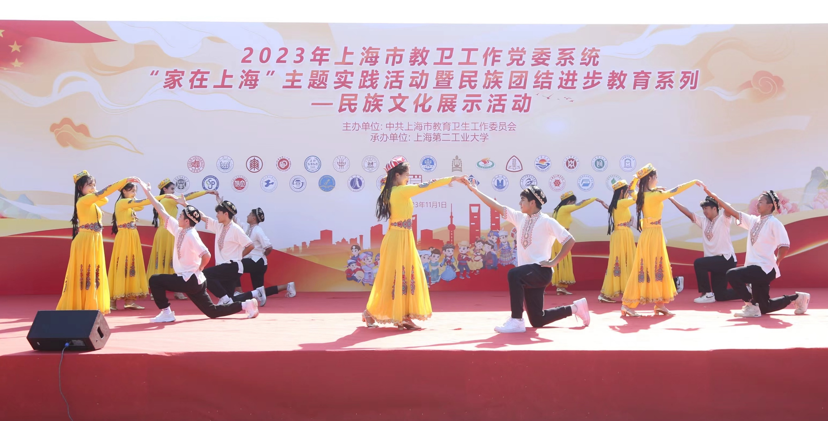 为深入学习宣传贯彻党的二十大精神,推进新时代党的民族工作高质量发展,铸牢中华民族共同体意识,11月1日,由上海市教卫工作党委主办、上海第二工业大学承办的2023年上海市教卫工作党委系统“家在上海”主题实践活动暨民族团结进步教育系列——民族文化展示活动在上海第二工业大学举行,此次活动齐聚沪上33所高校的近千名各民族师生参加。市教卫工作党委副书记张艳萍、市教卫工作党委统战处处长傅欣、市民宗局民族一处处长姜斌,上海第二工业大学相关领导和各高校统战干部及各民族学生代表出席了开幕式。sunbet申搏官网统战部、学工部、博物馆、民族联共同组织了包括汉族、维吾尔族、藏族、锡伯族、苗族等多民族的近30名师生代表参加此次文化展示活动,学校荣获“优秀组织奖”。