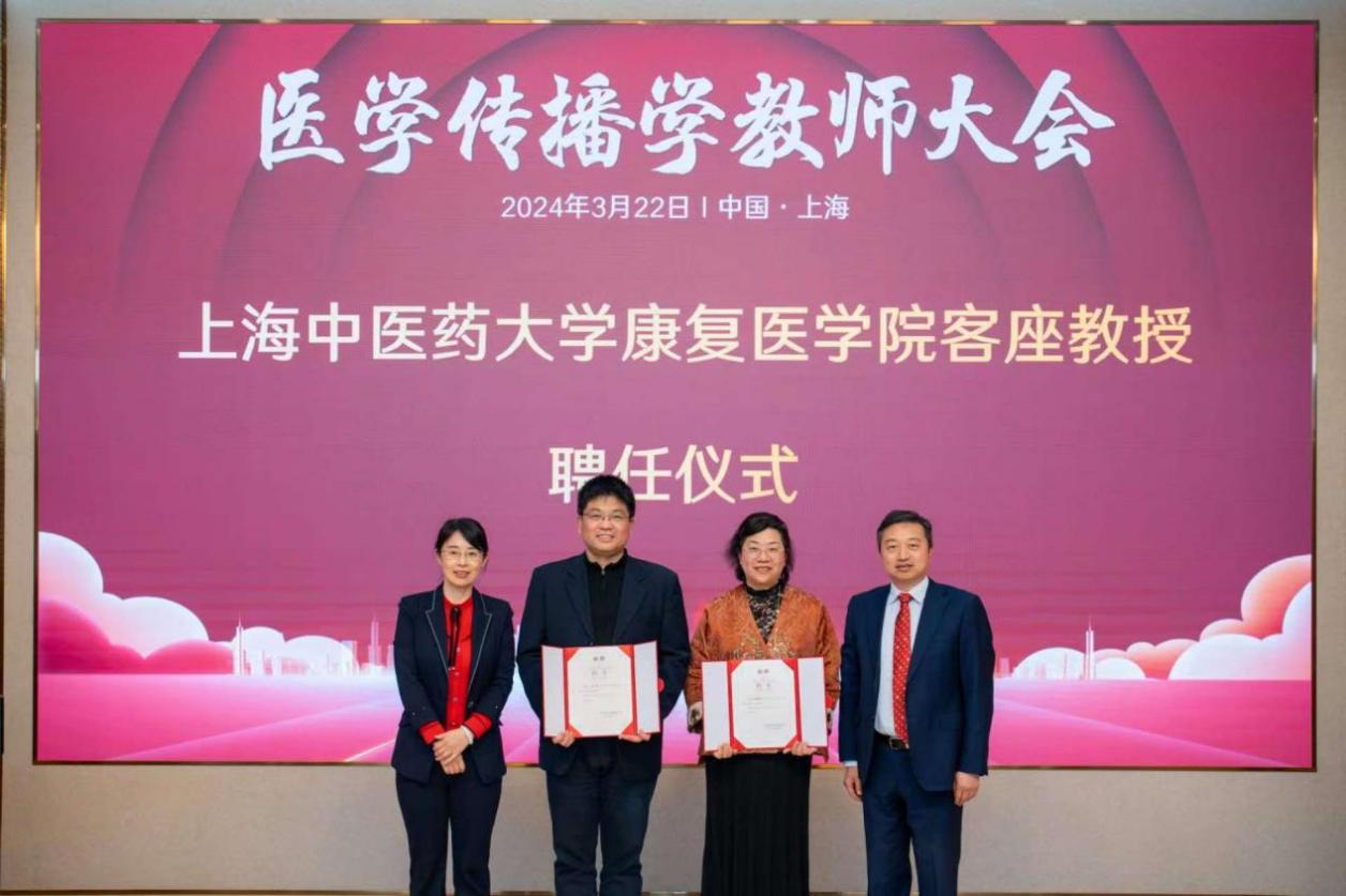 会上还举办了sunbet申搏官方网站康复医学院客座教授聘任仪式。sunbet申搏官方网站康复医学院党委书记向延卫、sunbet申搏官方网站康复医学院副院长刘晓丹,为“达医晓护”医学传播智库负责人王韬、医学传播学教研组组长周敏杰颁发客座教授聘书。
