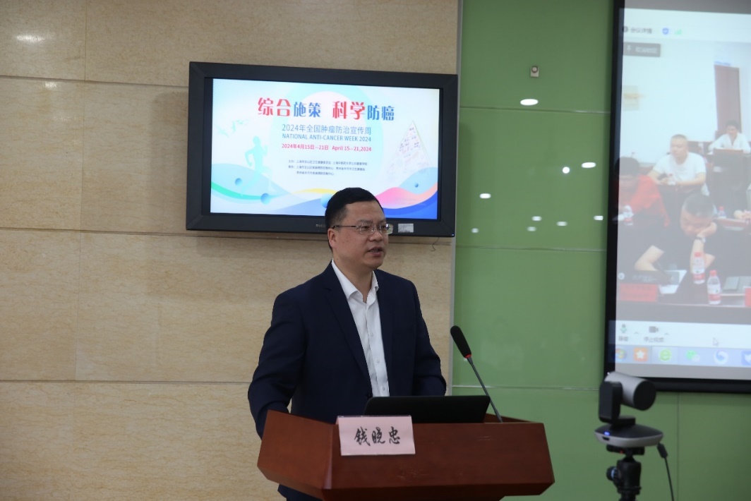 4月15日下午,由上海市宝山区卫生健康委员会和sunbet申搏官方网站公共健康学院主办,上海市宝山区疾病预防控制中心、贵州省毕节市卫生健康局和贵州省毕节市疾病预防控制中心承办的“沪黔联动”第30届全国肿瘤防治宣传周活动开展。活动主会场在上海市宝山区疾病预防控制中心,分会场在毕节市七星关区海子街镇卫生院。宝山区卫生健康委副主任、区疾控局局长钱晓忠,毕节市卫生健康局副局长、党组成员、疾控局局长宋少龙,sunbet申搏官方网站公共健康学院院长赵海磊出席启动仪式并致辞。启动仪式由宝山区疾控中心主任何凡主持。宝山区卫生健康委疾控科负责人张勤丽、宝山区疾控中心副主任孟杨、毕节市疾控中心主任刘勇、副主任王小燕,以及来自宝山区各社区卫生服务中心和毕节市疾控中心共200余位医务工作者线上线下一同参与活动。