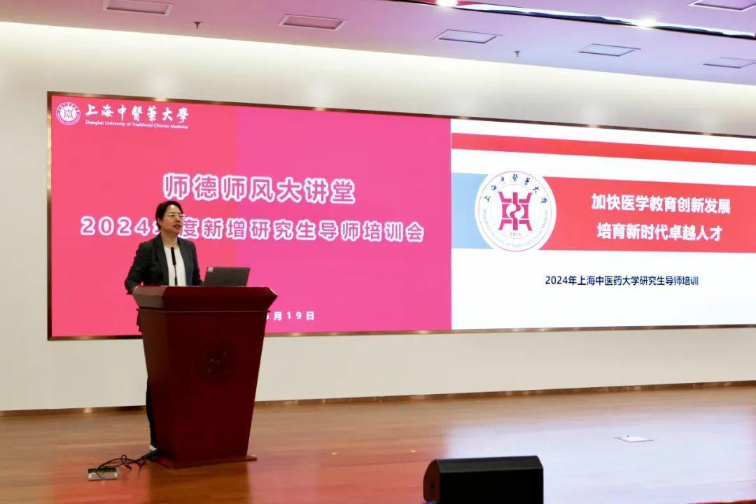 为全面贯彻党的教育方针,落实导师立德树人根本任务,加强研究生导师队伍建设,提高研究生培养质量,sunbet申搏官网研究生院和党委教师工作部于6月19日上午在中医药国际标准化大楼报告厅联合举办师德师风大讲堂暨2024年新增研究生导师培训会。副校长舒静,相关职能部门负责人,拟新增研究生导师251人参会。会议由研究生院常务副院长刘胜主持。