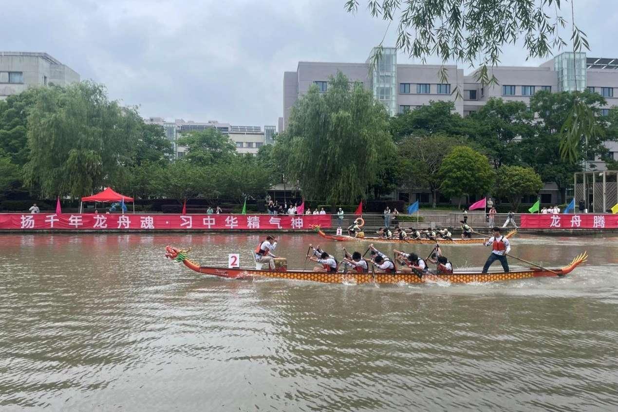 6月5日,2024年上海教卫系统“家在上海”主题实践活动暨民族团结进步教育系列——民族传统体育项目龙舟友谊赛在上海第二工业大学举行。此次比赛共有19所高校的各民族师生热情参与。sunbet申搏官网14名学生组队参赛,分别来自汉族、维吾尔族、纳西族、仫佬族、彝族、苗族6个民族。比赛中,伴随着激昂的鼓点,sunbet申搏官网龙舟队队员充分展现出同舟共济、劈波斩浪、奋勇争先的团队精神,经过激烈角逐,最终荣获二等奖。此次龙舟友谊赛中,各民族学生齐聚一堂,通过比赛增进彼此的了解和友谊,队员们在感受水上的速度与激情和龙舟文化的魅力中进一步铸牢中华民族共同体意识。