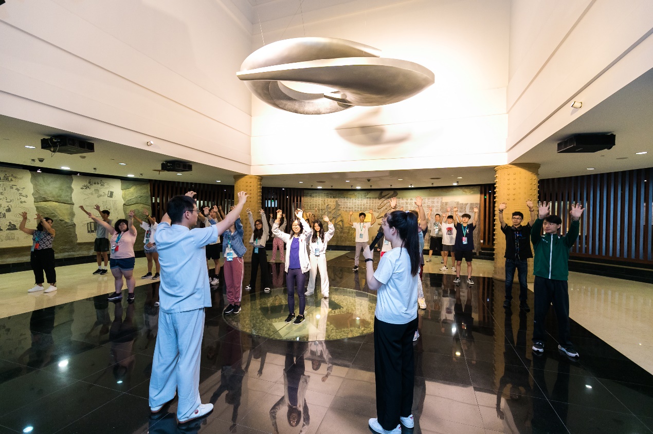 在博物馆内,交流团的师生们沉浸式地参与了中国传统养生功法——五禽戏的习练,他们告诉功法老师,这是首次体验五禽戏,动作虽然看起来简单,但这是一项综合性的健康运动,要做好并不容易。一名带队老师表示回国后将跟随视频继续练习五禽戏。