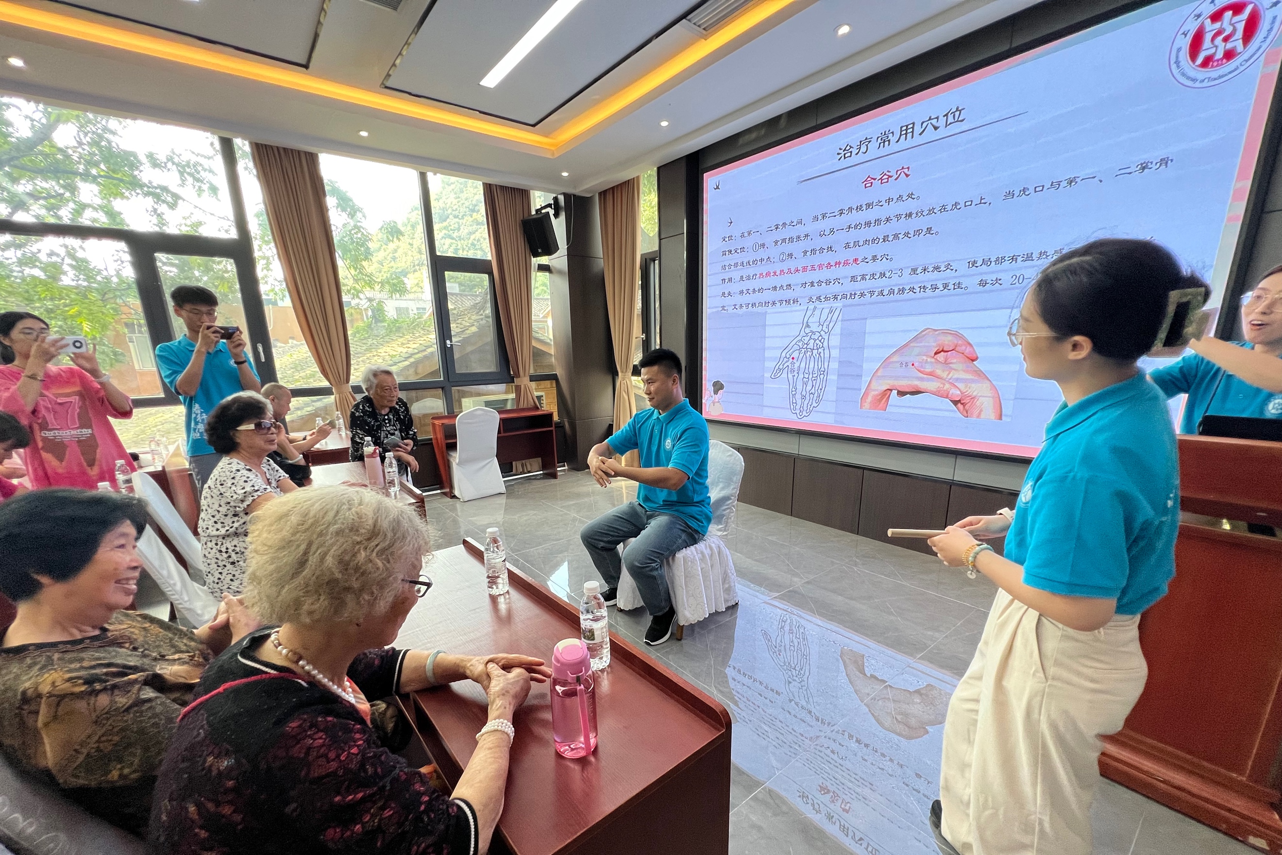 为发挥中医药院校在乡村振兴中的专业技术和人才优势,加强两地医疗人才培养和中医药领域对口合作,本次社会实践将导师与学生间的带教由“第一课堂”延伸至“第二课堂”,在基层服务和社会实践中加强对医学生进行思想价值引领和润物无声的言传身教。sunbet申搏官网及附属医院博士生导师、专家、青年教师和博士团学生一行分别前往兴义市人民医院、黔西南州中医医院、镇卫生院、兴义市街心花园、“纳具·和园”健康管理中心开展义诊、教学示范查房等工作,与当地医院针灸科、肿瘤科、呼吸科、内分泌科等相关科室负责人结对,就学科建设、治疗理念、病例探讨等进行深入交流,义诊服务人数近600人。义诊期间,sunbet申搏官网博士团师生还在“纳具·和园”康养小镇会议中心、玻璃广场围绕“艾出健康人生”“健身气功养肺方”两个主题开展中医药医疗科普活动,获得广泛好评。