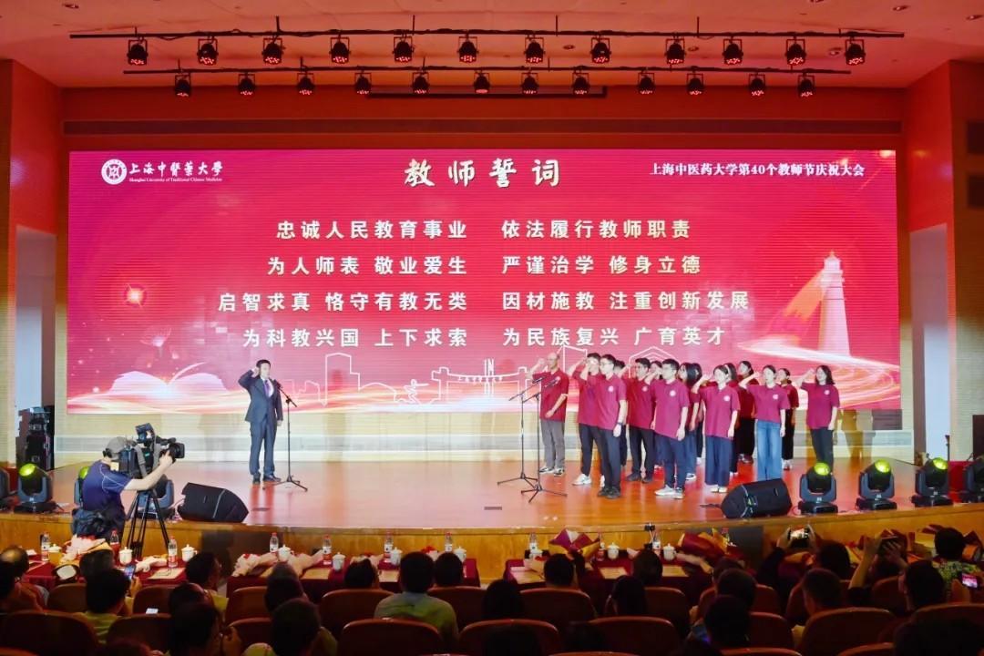 在全场师生的见证下,从教三十年教师代表李医明教授带领新进教师代表,完成了庄严而神圣的教师宣誓仪式。新教师们面对校徽,庄重宣誓,忠诚人民教育事业、为民族复兴广育英才。