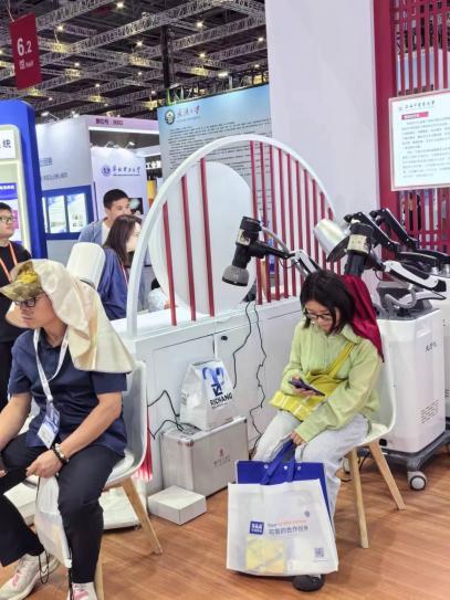 围绕工博会主题,学校产业发展中心在康复医学院、协同创新中心等部门的支持下组织了多项成果参展:非侵入式智能脑电图机、OYFM-7000型手指运动训练器、肘关节持续被动活动仪、ROHAND灵巧手、脑-肌-机接口、中医智能仪、仲景方证虚拟数字人、智能灸疗仪等。现场吸引了大批观众驻足观看、咨询,展示了sunbet申搏官网的“智”造魅力。