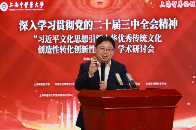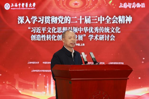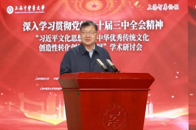 上海市教卫工作党委副书记、市教委副主任顾红亮在致辞中指出,在习近平文化思想提出一周年之际,本次研讨会对进一步推动中华优秀传统文化创造性转化创新性发展、深化建设习近平文化思想最佳实践地,具有十分重要的意义。他提出,要深耕中华优秀传统文化,建构中国自主的知识体系;要深化重要问题的系统性学理性阐释,为筑牢文化自信自强根基提供学理支撑;要深化学科交叉融合,传承创新发展中医药文化,把握学科前沿,打通文史哲与中医药学科发展,促进中医药交叉学科的多元化发展,培养更多自信自强的中医药人才;要深入开展国际交流,推动中医药文化走向世界,引领全球中医药发展,不断提高中医药文化国际影响力,向世界阐明中华文明对世界文明的重要贡献。