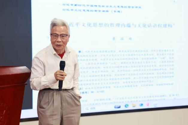 中国浦东干部学院首任常务副院长、上海市领导科学学会创始会长奚洁人教授作“习近平文化思想与中国传统经典的时代化”主题发言,他强调了传统经典在中华文明中的重要性,并指出习近平文化思想通过创造性转化和创新性发展,推动了传统经典的时代化和现代化。习近平总书记以传统经典厚植执政理念和治国方略的文化根基,以传统经典的“心学”智慧丰富党性修养内涵,以传统文化经典引领世界文化和人类文明互鉴。