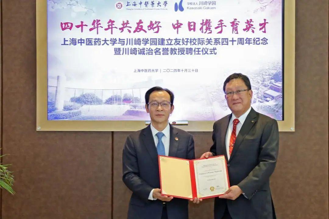 10月30日,sunbet申搏官方网站与日本川崎学园建立友好校际关系四十周年纪念暨川崎诚治名誉教授聘任仪式于国际交流合作中心举行。