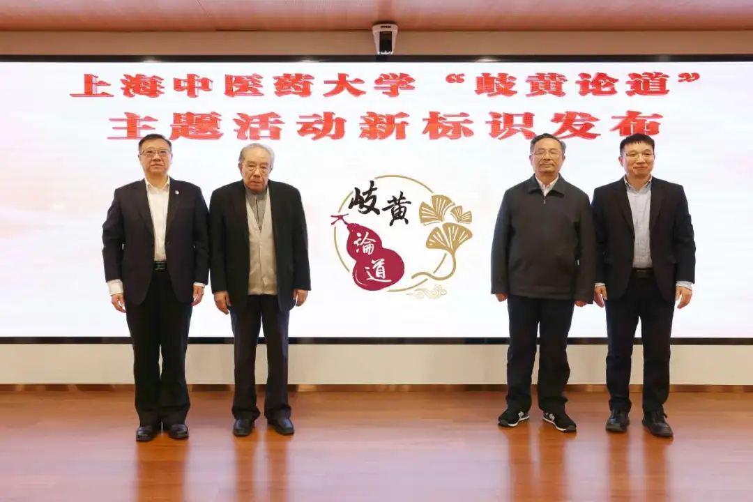 为进一步提升品牌效应,本次活动中特别推出“岐黄论道”新标识,并举行发布仪式。该标识主体部分采用“岐黄论道”四字书法,以葫芦形状的阴刻印章呈现,象征“悬壶济世”和“阴平阳秘”的中医理念,蕴含中医的传统与智慧;辅助图案则以杏叶和祥云为元素,三片杏叶犹如打开的书本,象征中医药文化在老中青三代教师教书育人的接力传承中不断发扬光大,引领学生共同成长。