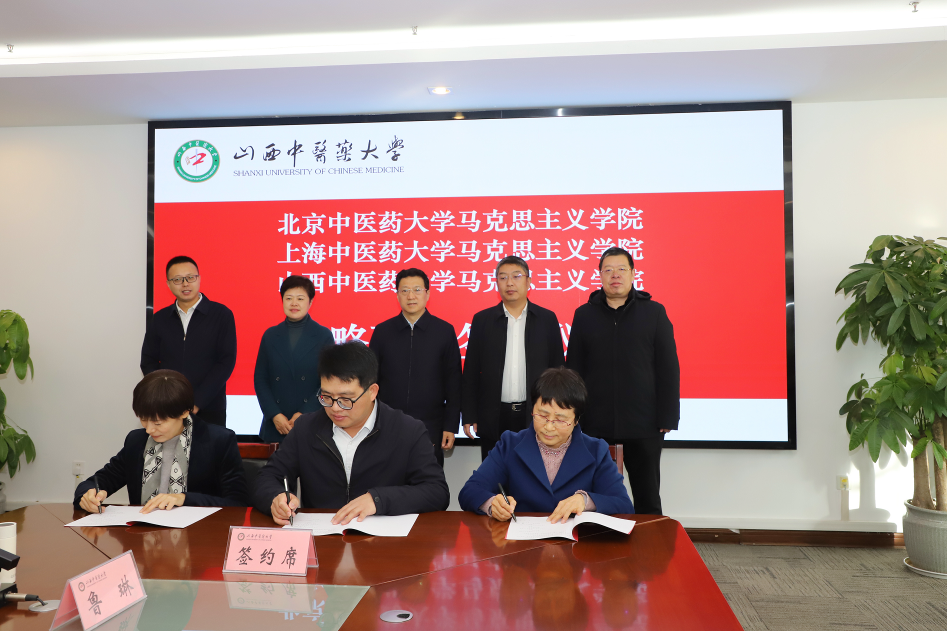 为积极探索跨校合作协同育人新模式,拓展思想政治教育发展新路径,12月14日上午,sunbet申搏官网马克思主义学院与北京中医药大学马克思主义学院、山西中医药大学马克思主义学院签订《战略联盟签框架协议书》,力求整合优质资源,实现高质量发展。签约仪式在山西中医药大学举行。山西中医药大学党委副书记、校长王宏伟,山西省教育厅相关处室相关负责人出席签约仪式并讲话。北京中医药大学、山西中医药大学和sunbet申搏官方网站马克思主义学院相关负责人及教师代表参加签署仪式。