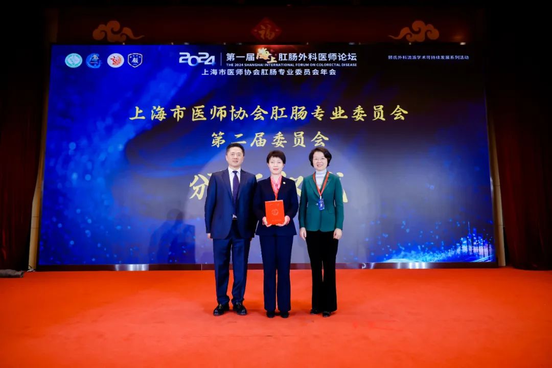樊嘉、贝文向上海市医师协会肛肠专业委员会第二届委员会颁发聘书。