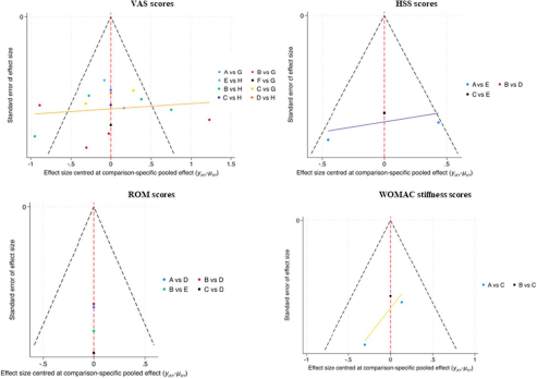 该文基于循证医学系统评价和网状Meta分析的方法,检索了PubMed、Embase、Cochrane等6大数据库及clinicalTrials.gov中针灸治疗TKA术后患者的相关临床试验研究,纳入28项符合条件的随机对照试验,共涉及2128例患者。所评估7种干预措施包括传统针灸、电针、耳穴贴压、温针灸、艾灸、特殊针灸(激光针灸、干针等)及假针灸。通过贝叶斯网络Meta分析,整合直接与间接比较,评估针灸对TKA术后患者视觉模拟评分(VAS)的疼痛缓解效果,对TKA术后患者膝关节活动度(ROM)、膝关节功能恢复情况(HSS评分)及膝关节僵硬度(WOMAC评分)改善情况。