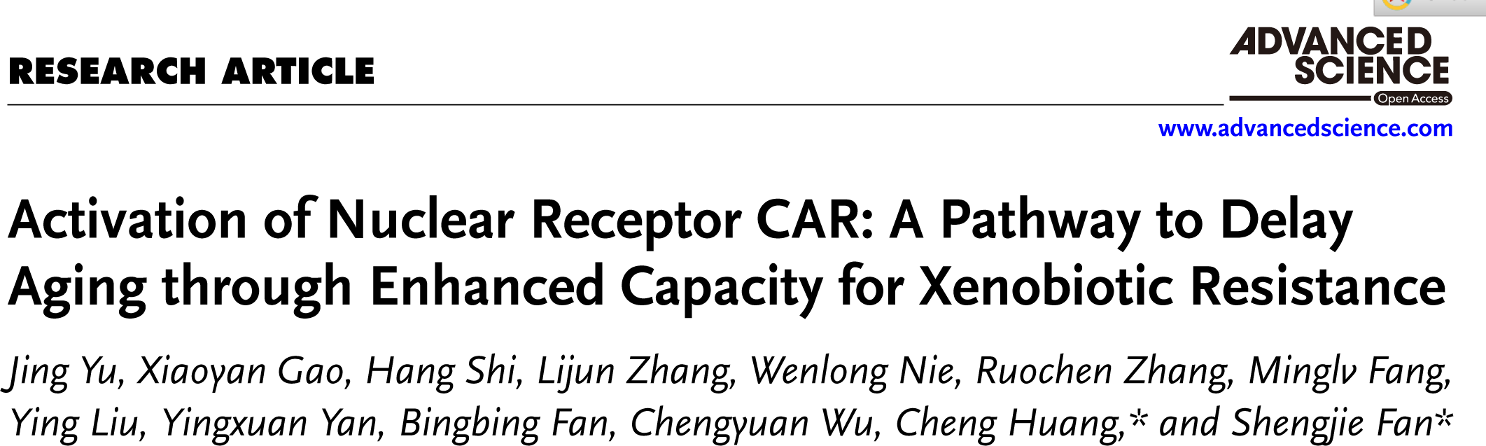 近日,sunbet申搏官网中药学院范圣洁、黄诚课题组在Advanced Science发表了题为Activation of nuclear receptor CAR: A pathway to delay aging through enhanced capacity for xenobiotic resistance的研究论文,揭示靶向核受体CAR的抗衰老机制。