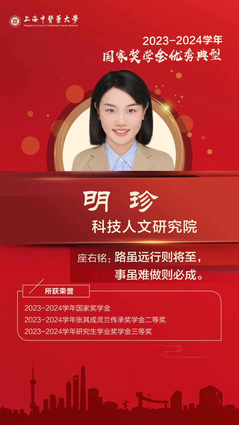 经过三年的努力,明珍同学如期成为一名预备党员。研究生一年级阶段,明珍同学专业课成绩与综合成绩均为专业第一。在“扬帆计划”暑期社会实习活动中在上海市卫生健康委员会外事处担任行政助理职位,积累了丰富的实践经验此外,协助正康曦医馆为上海音悦里宜悦幼儿园宣传科普中医药知识,在“中医药文化进校园活动”中担任讲师,为实现中医梦贡献自己的青春力量。